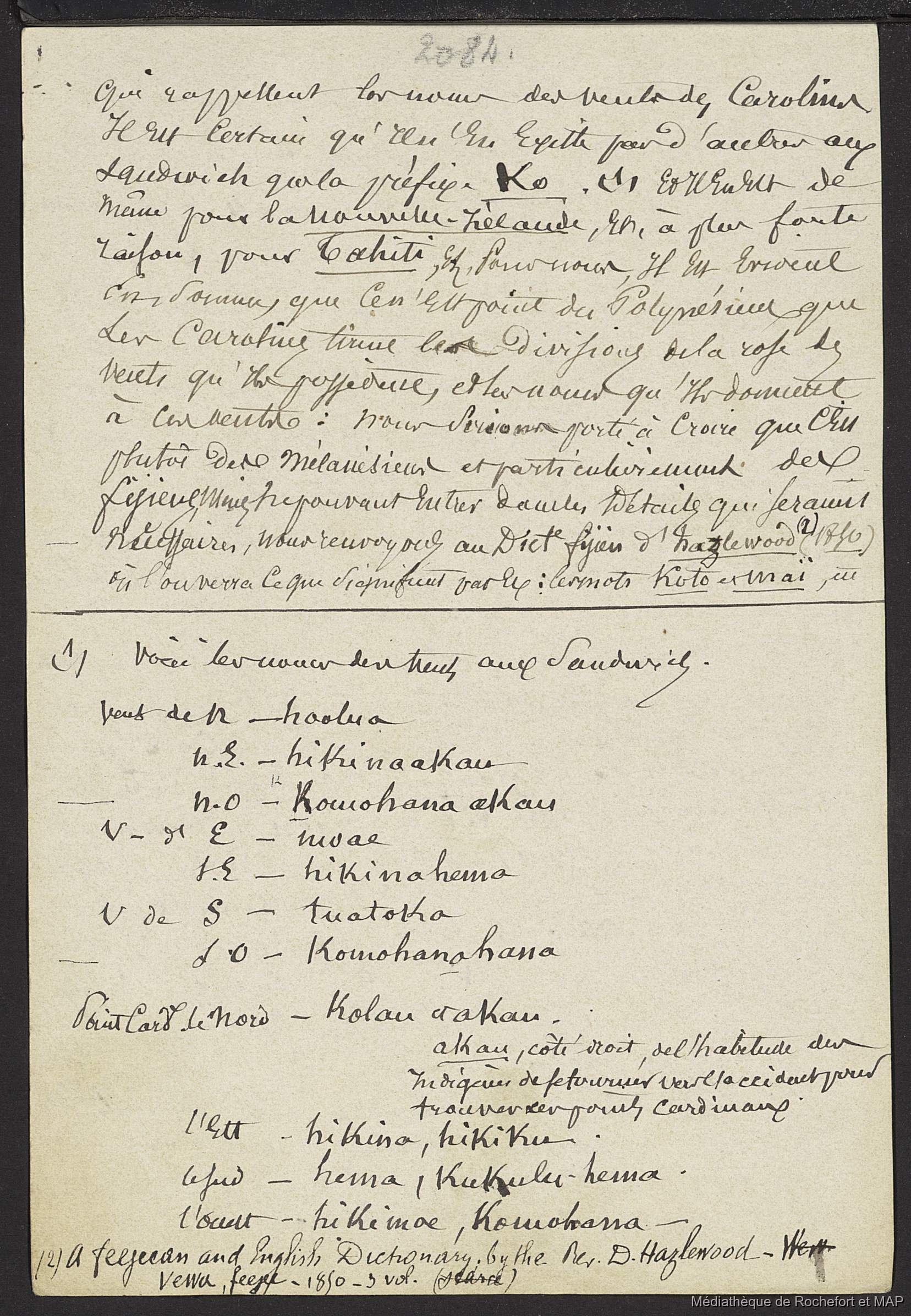 Théorie des migrations. Question Carolines et Mariannes ; Numération de la Nouvelle-Calédonie (B172996201_Ms00182)