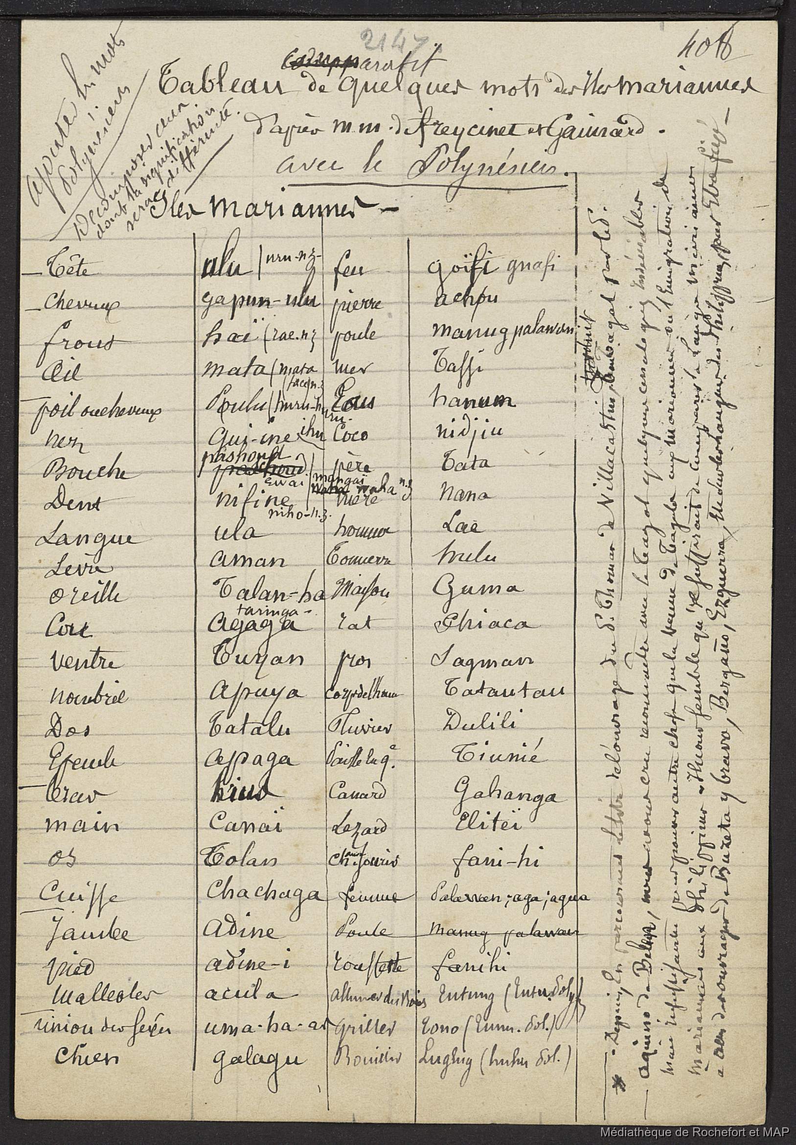 Lesson, Pierre-Adolphe [accessed: 2025/12/8]. "Théorie des migrations. Question Carolines et Mariannes ; Numération de la Nouvelle-Calédonie (B172996201_Ms00182)" (Object Id: 165655). In