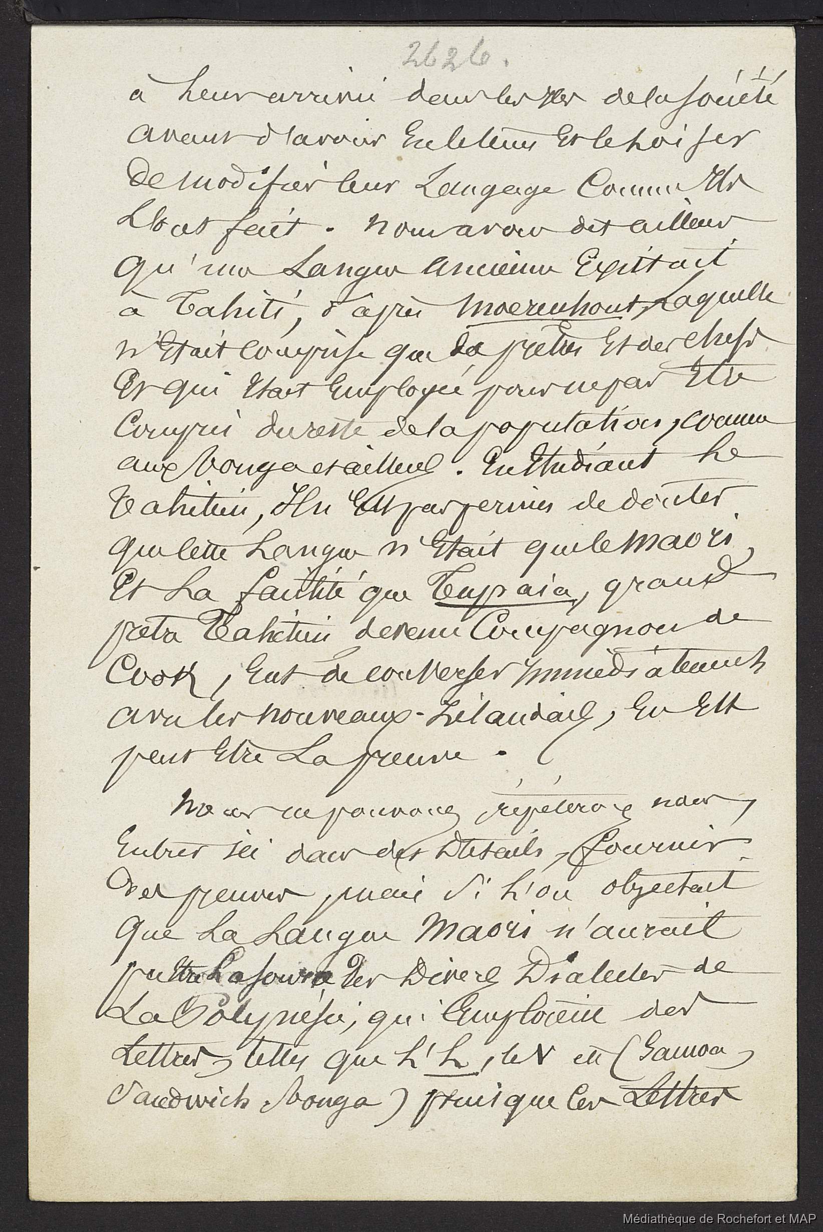 Lesson, Pierre-Adolphe [accessed: 2025/12/8]. "Théorie des migrations. Nouvelle-Zélande lieu d'origine des Polynésiens (B172996201_Ms00184)" (Object Id: 165763). In
