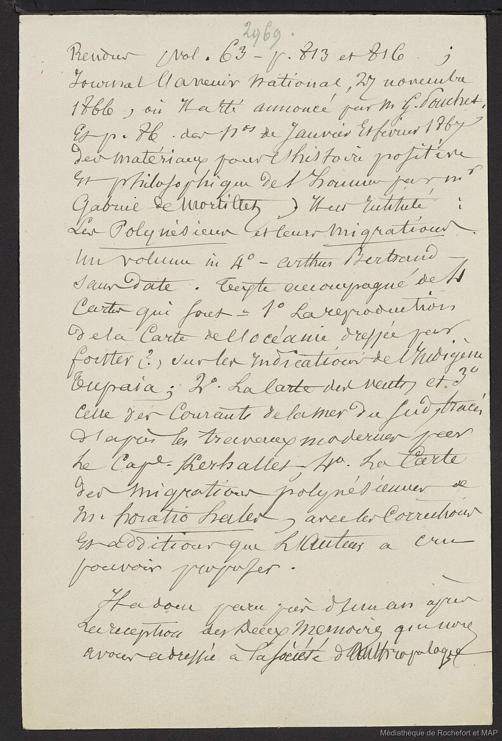 Quote this document Lesson, Pierre-Adolphe [accessed: 2025/12/8]. "Théorie des migrations. Lieu d'origine des Néo-Zélandais (B172996201_Ms00185)" (Object Id: 165788). In Théorie des migrations. Lieu d'origine des Néo-Zélandais (B172996201_Ms00185). ODSAS: https://www.odsas.net/object/165788.