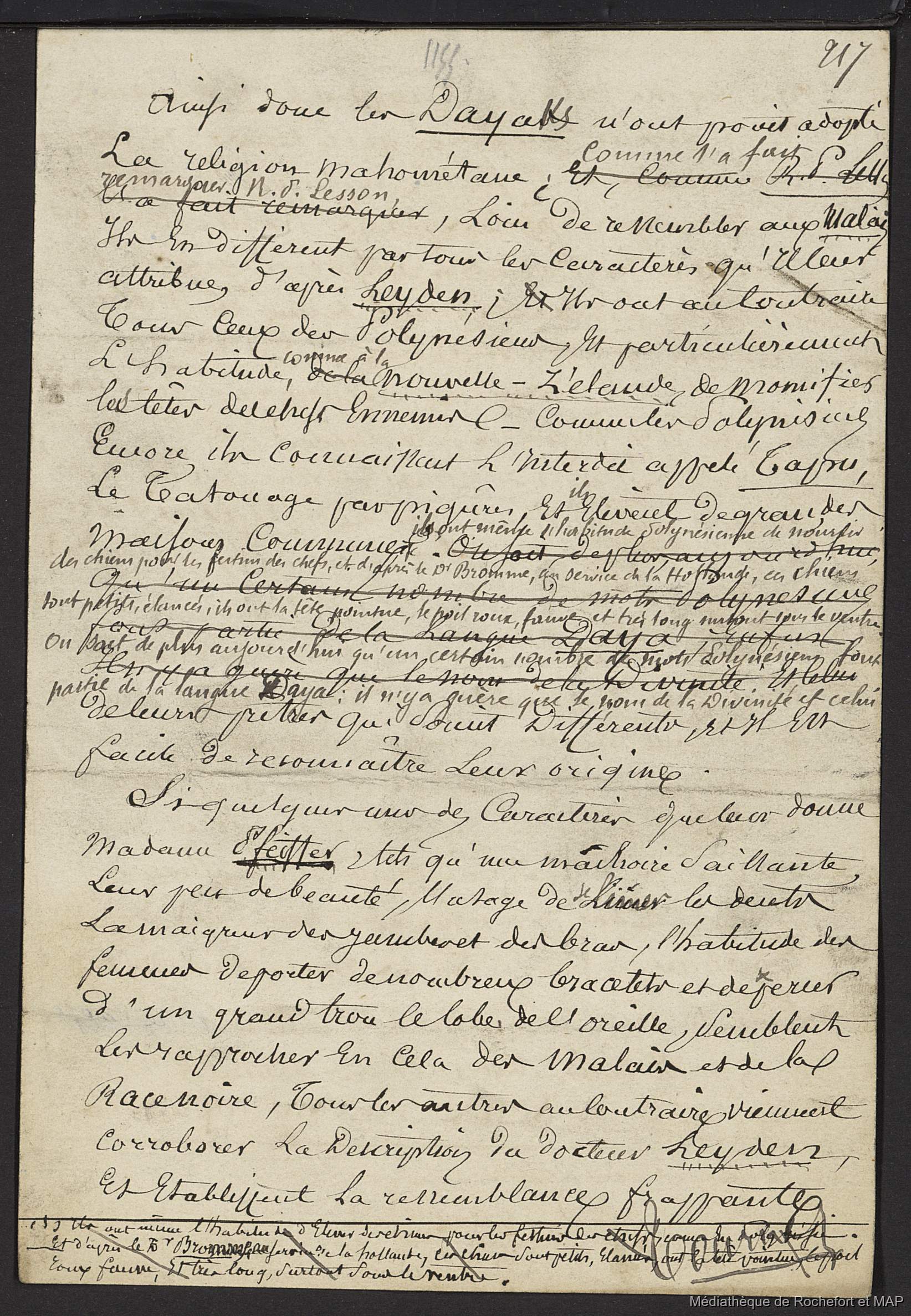 Lesson, Pierre-Adolphe [accessed: 2025/12/8]. "Théorie des migrations. Malaisiens, Battaks, Dayaks, banguis, alfourous; Conclusion de la 2ème grande théorie. (B172996201_Ms00189)" (Object Id: 165988). In