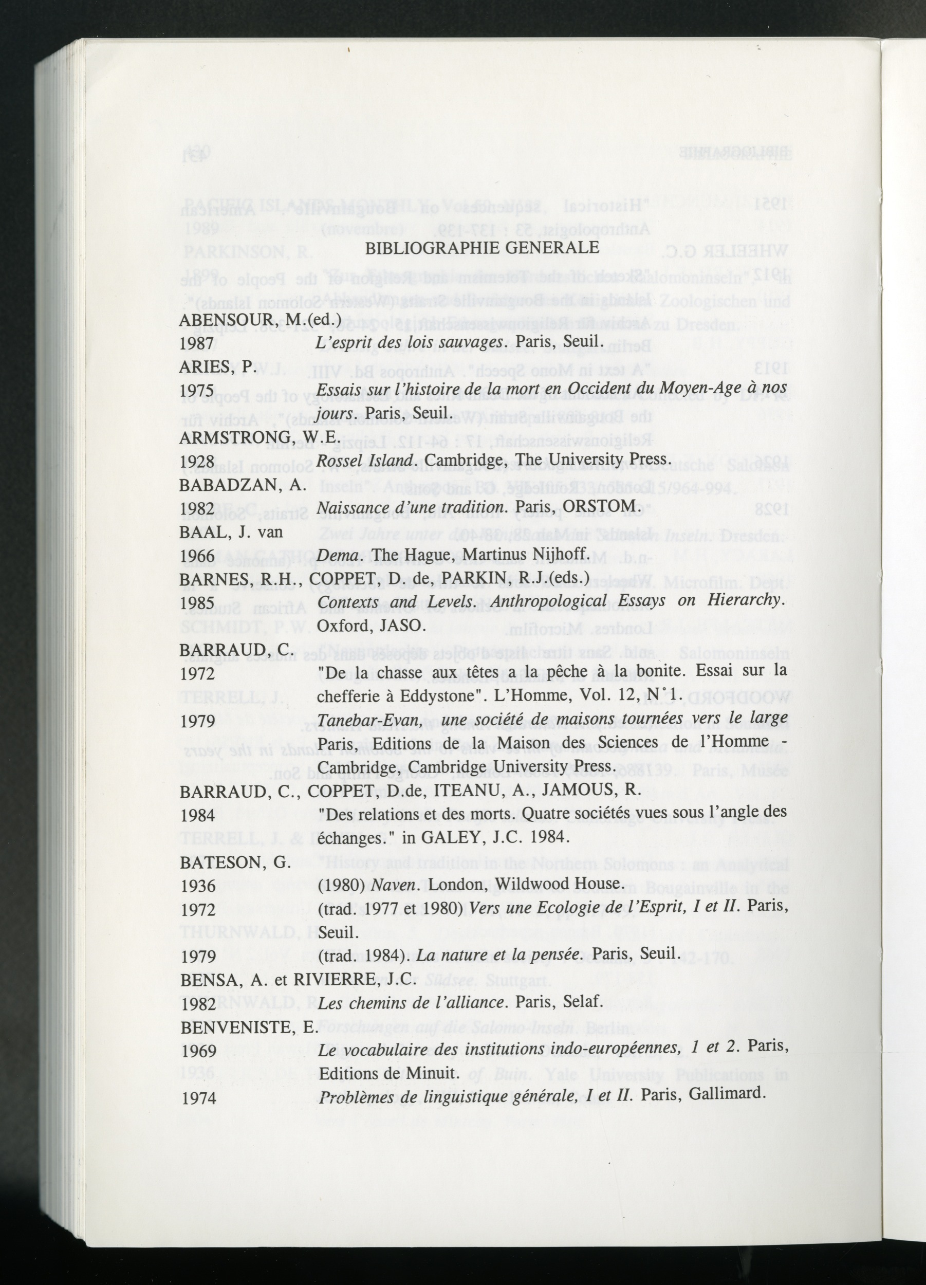 Monnerie, Denis 1996 [accessed: 2026/2/5]. "Nitu : Les vivants, les morts et le cosmos selon la société de Mono-Alu (Îles Salomon). Ouvrage de Denis Monnerie" (Object Id: 168929). In