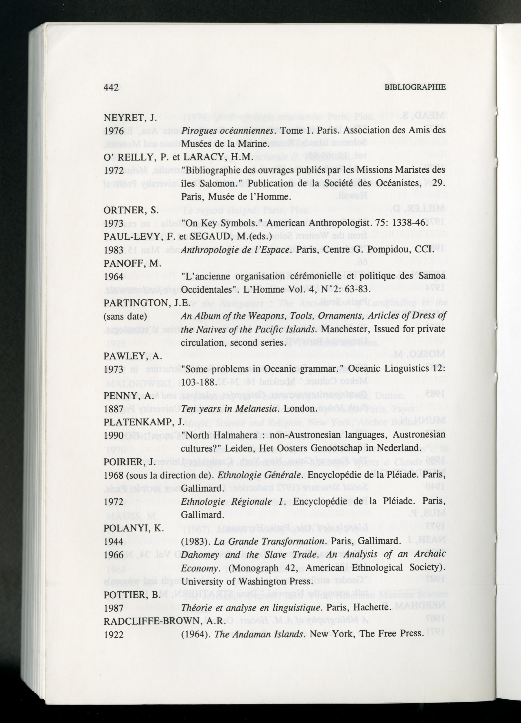 Quote this document Monnerie, Denis 1996 [accessed: 2026/2/5]. "Nitu : Les vivants, les morts et le cosmos selon la société de Mono-Alu (Îles Salomon). Ouvrage de Denis Monnerie" (Object Id: 168940). In Nitu : Les vivants, les morts et le cosmos selon la société de Mono-Alu (Îles Salomon). Ouvrage de Denis Monnerie. ODSAS: https://www.odsas.net/object/168940.