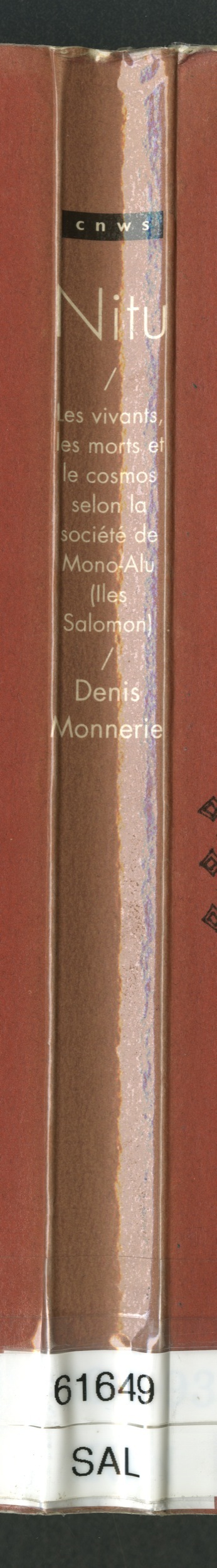 Monnerie, Denis 1996 [accessed: 2026/2/5]. "Nitu : Les vivants, les morts et le cosmos selon la société de Mono-Alu (Îles Salomon). Ouvrage de Denis Monnerie" (Object Id: 168948). In