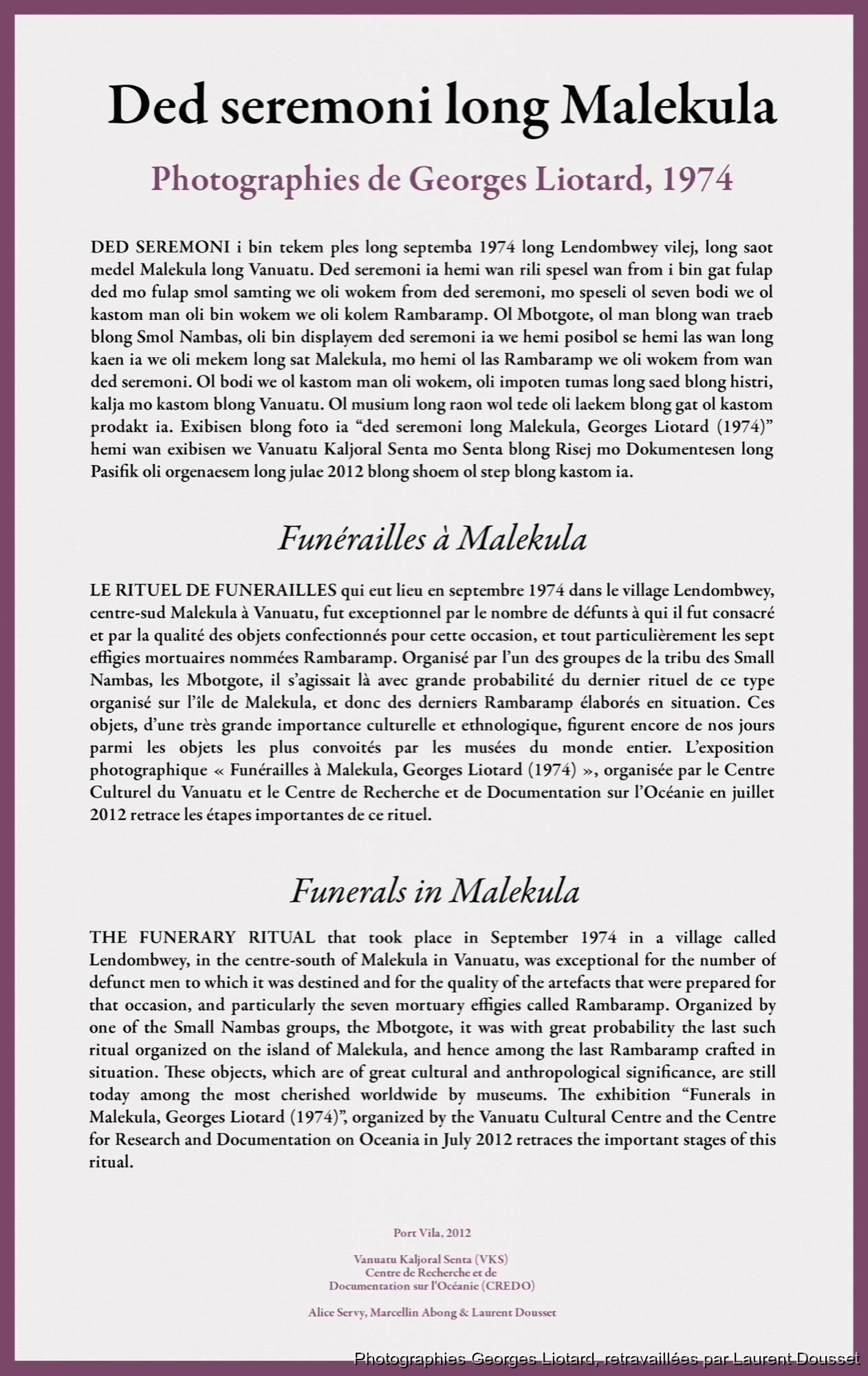 Exposition Photographique Funérailles à Malekul...