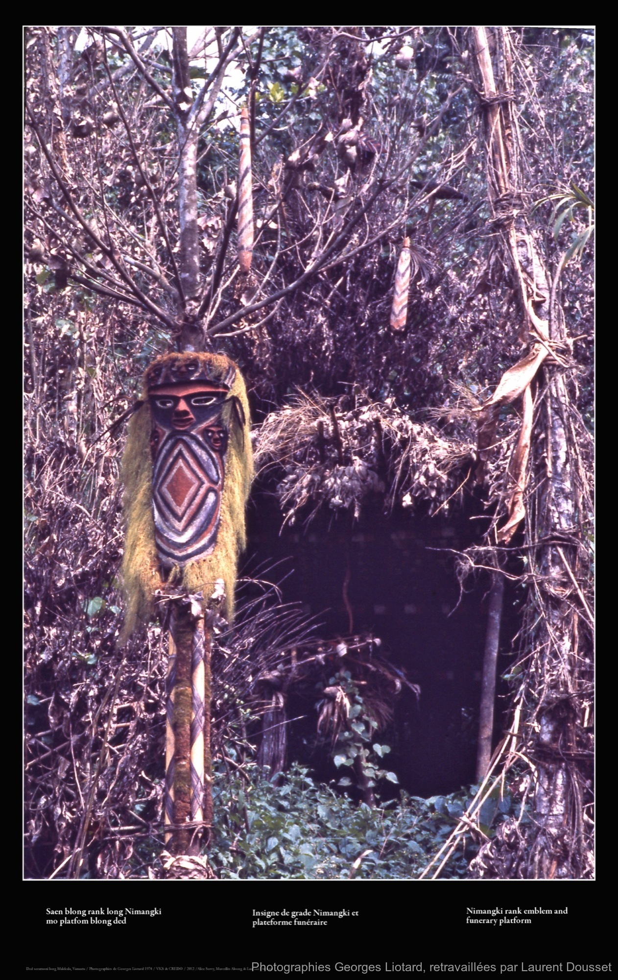 Exposition Photographique Funérailles à Malekula, Georges Liotard (les photographies de l'exposition) / Insigne de grade Nimangki et plateforme funéraire / Dousset, Laurent; Liotard, Georges / Vanuatu, Malekula