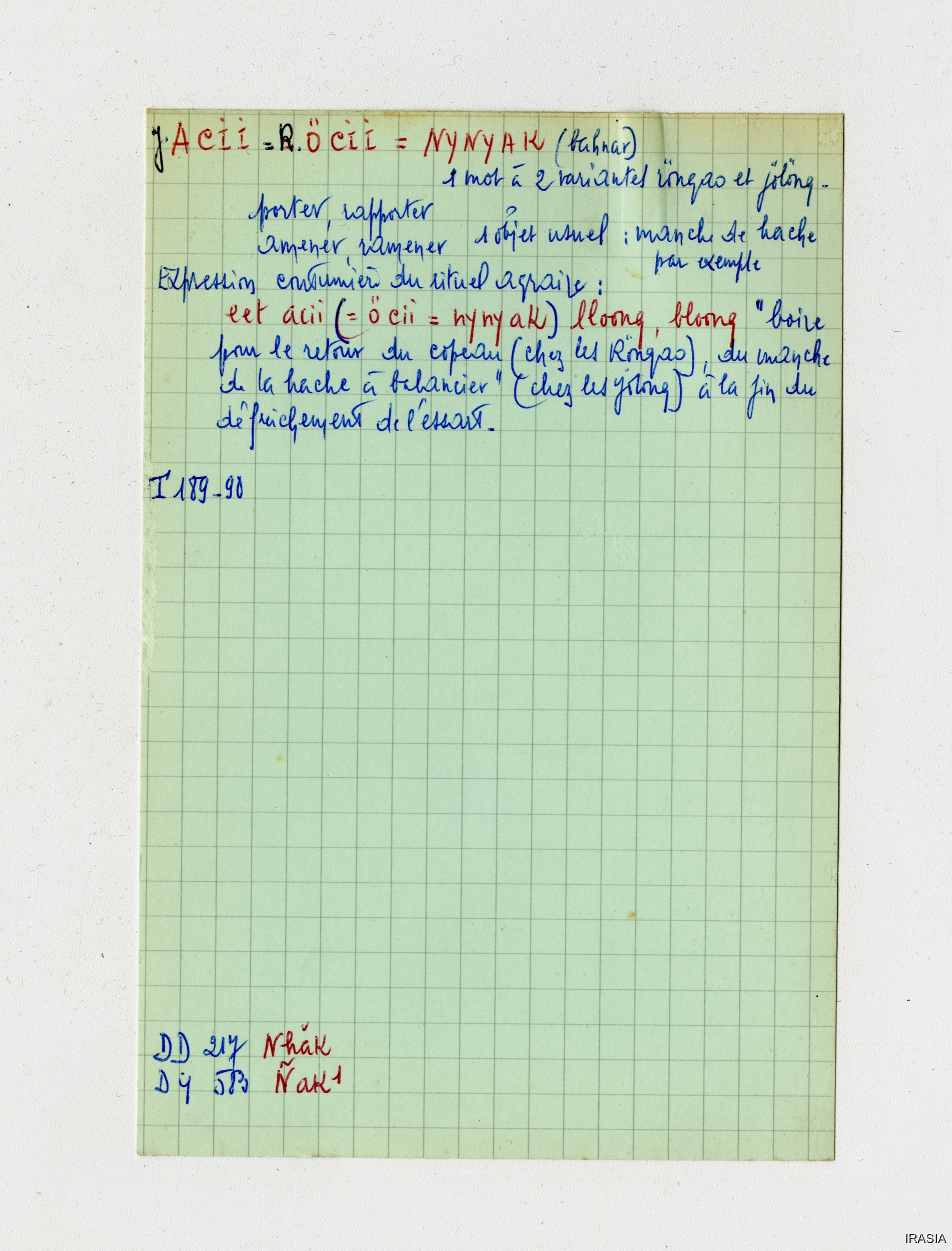 Quote this document Léger, Daniel [accessed: 2026/2/5]. "Lexique : Fiches Bahnar" (Object Id: 169964). In Lexique : Fiches Bahnar. ODSAS: https://www.odsas.net/object/169964.