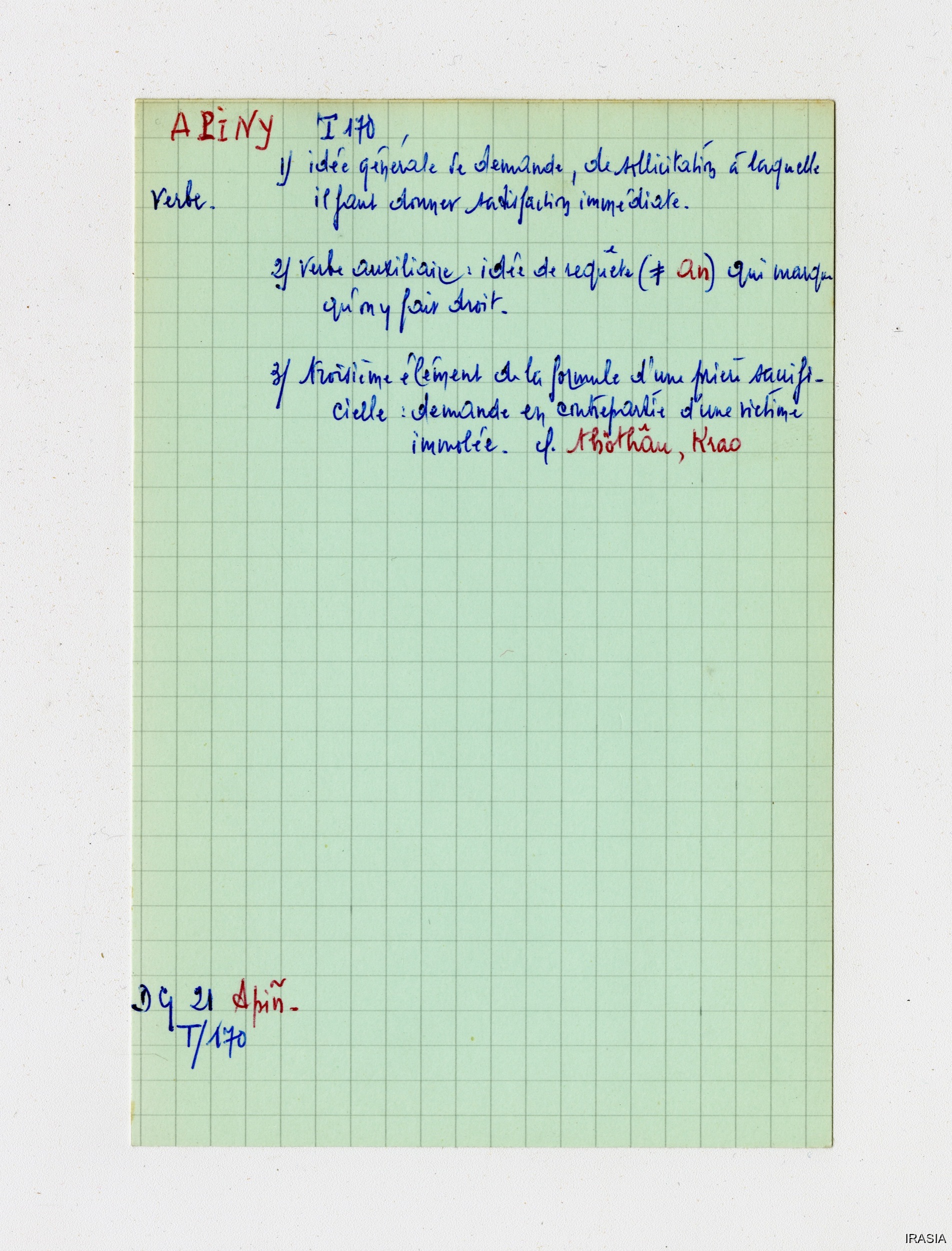 Quote this document Léger, Daniel [accessed: 2026/2/5]. "Lexique : Fiches Bahnar" (Object Id: 169993). In Lexique : Fiches Bahnar. ODSAS: https://www.odsas.net/object/169993.