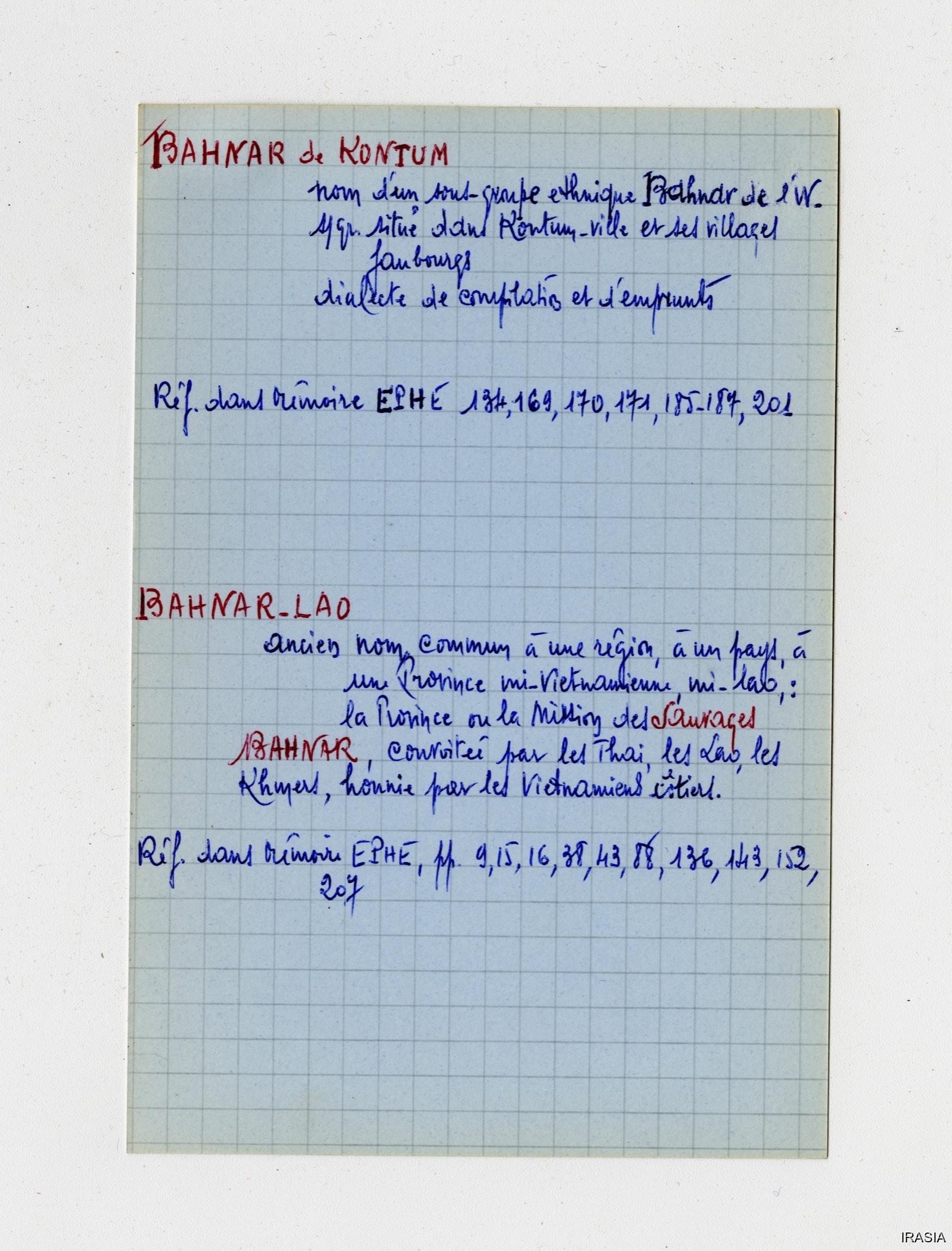 Lexique : Fiches Bahnar [Set(s) 1470]