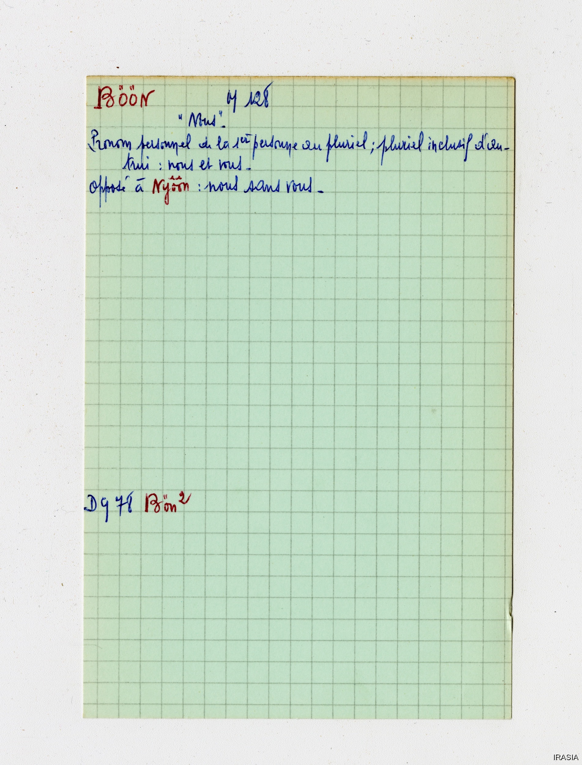 Quote this document Léger, Daniel [accessed: 2026/2/5]. "Lexique : Fiches Bahnar" (Object Id: 170063). In Lexique : Fiches Bahnar. ODSAS: https://www.odsas.net/object/170063.