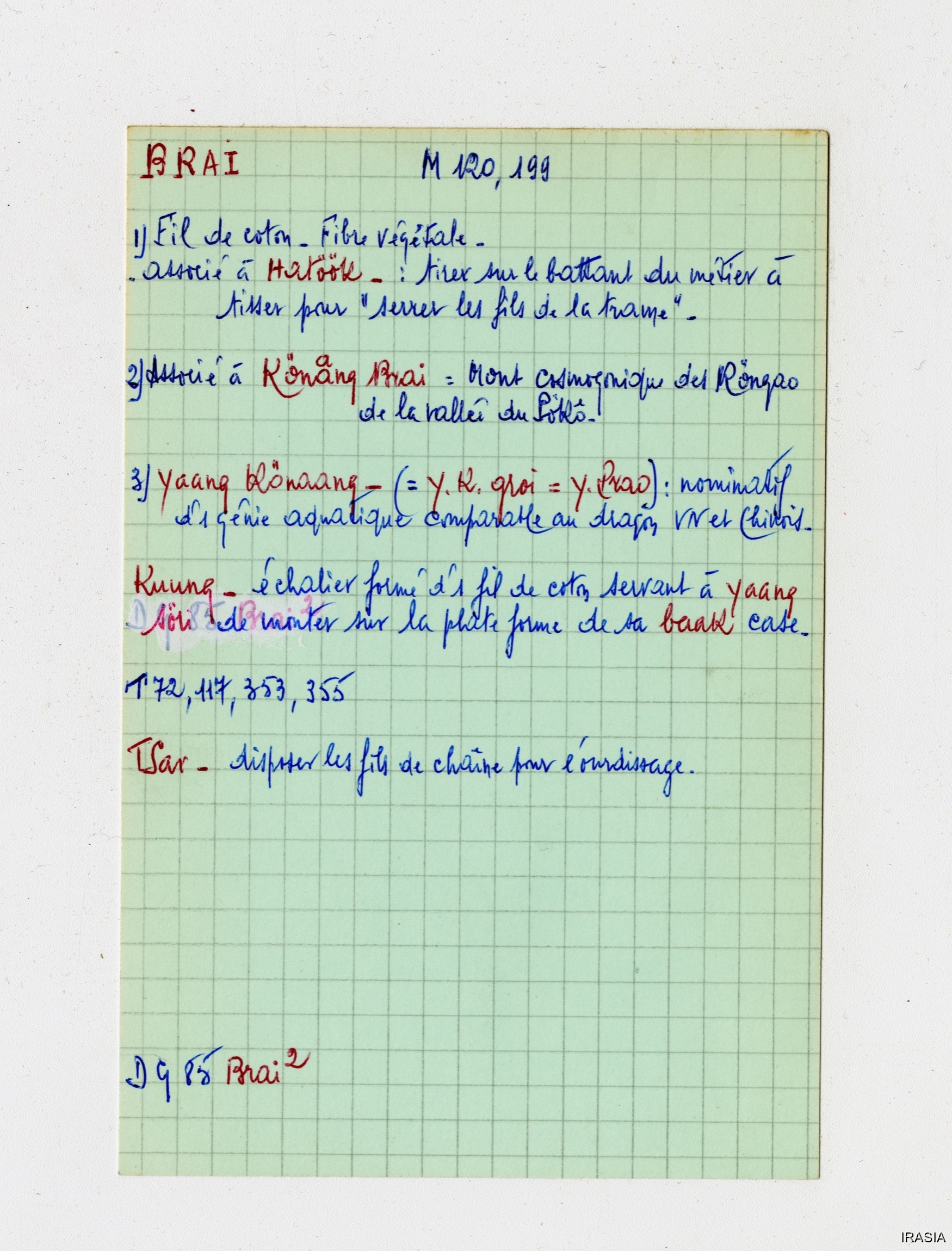 Léger, Daniel [accessed: 2026/2/5]. "Lexique : Fiches Bahnar" (Object Id: 170081). In