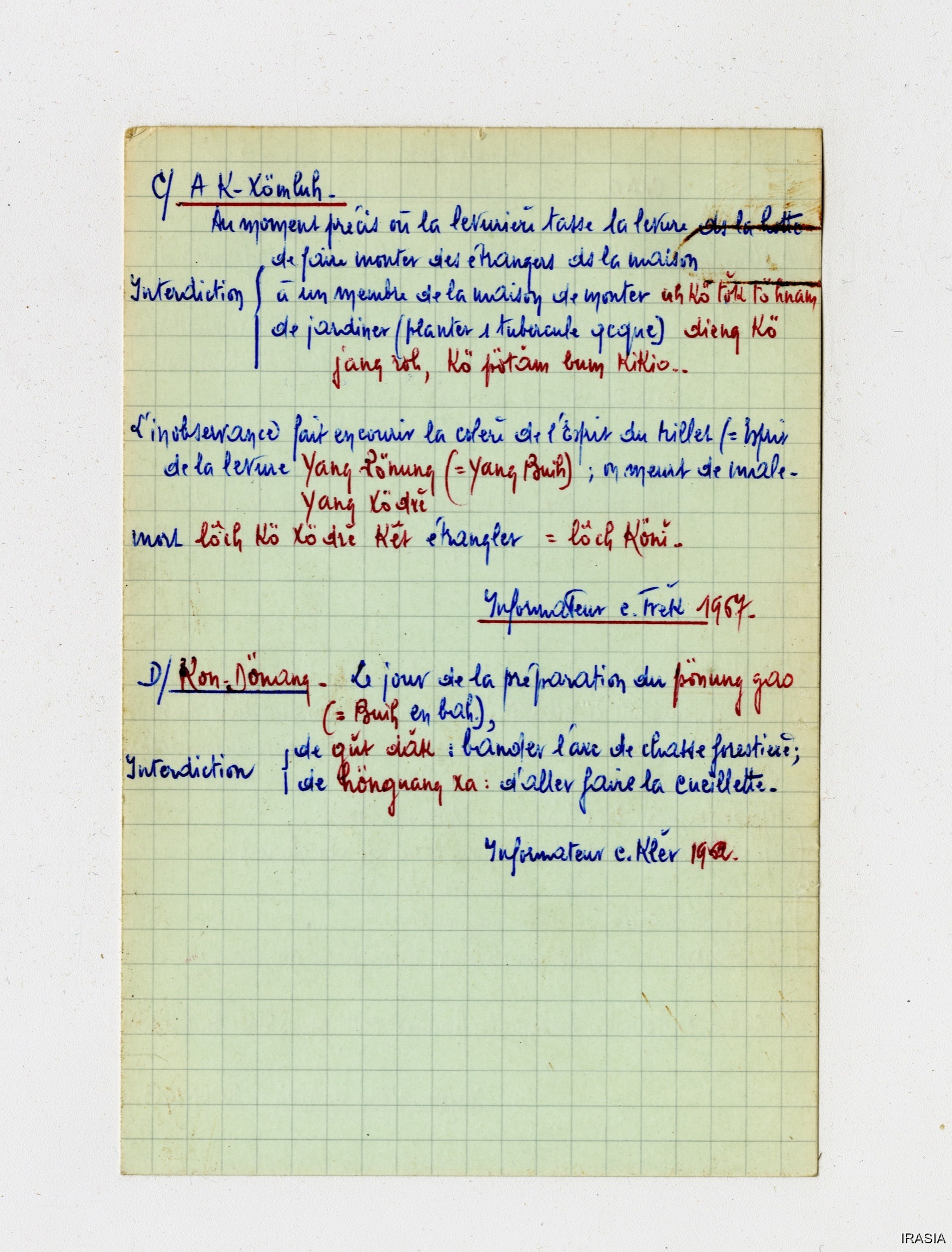 Quote this document Léger, Daniel [accessed: 2026/2/5]. "Lexique : Fiches Bahnar" (Object Id: 170231). In Lexique : Fiches Bahnar. ODSAS: https://www.odsas.net/object/170231.