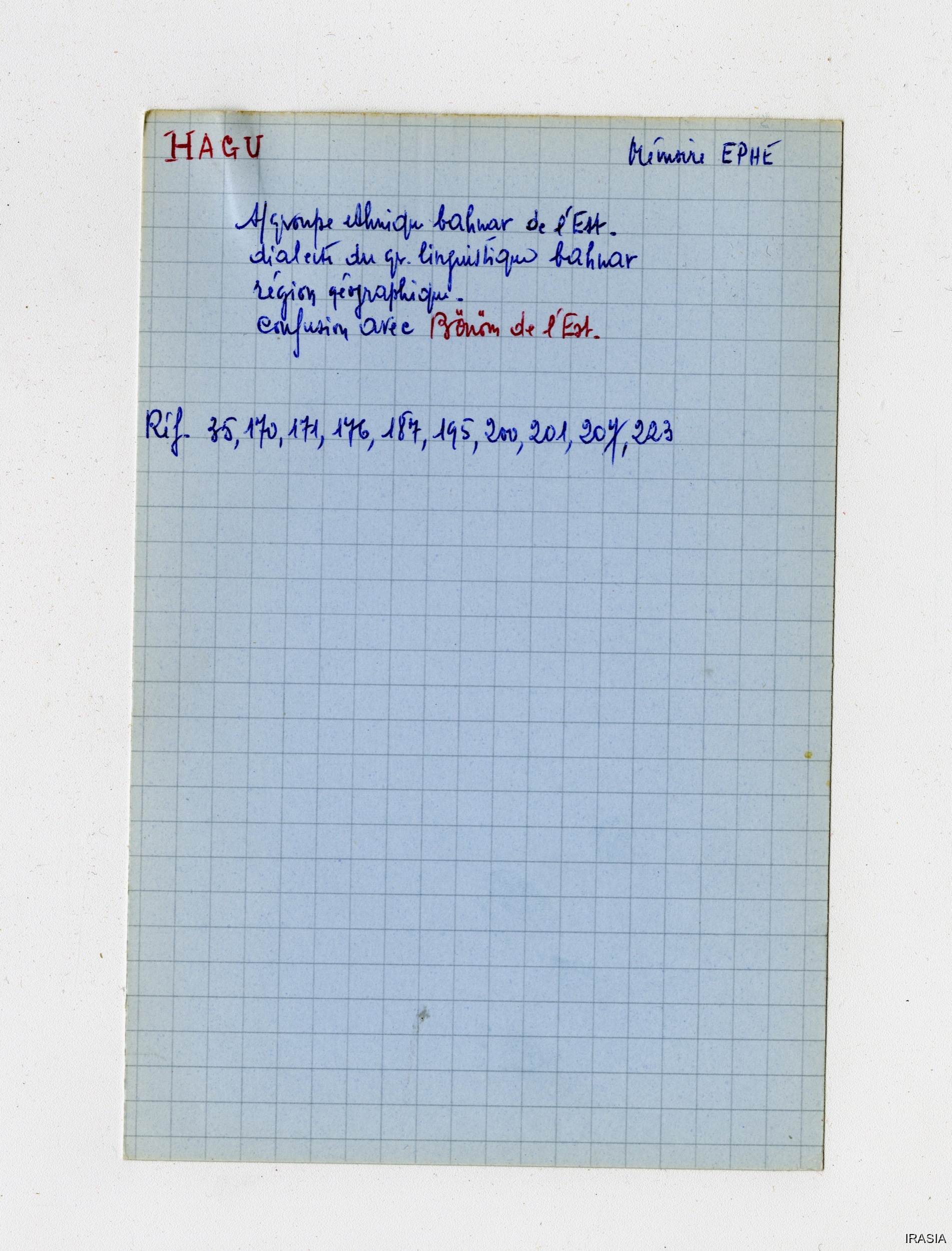 Lexique : Fiches Bahnar [Set(s) 1470]