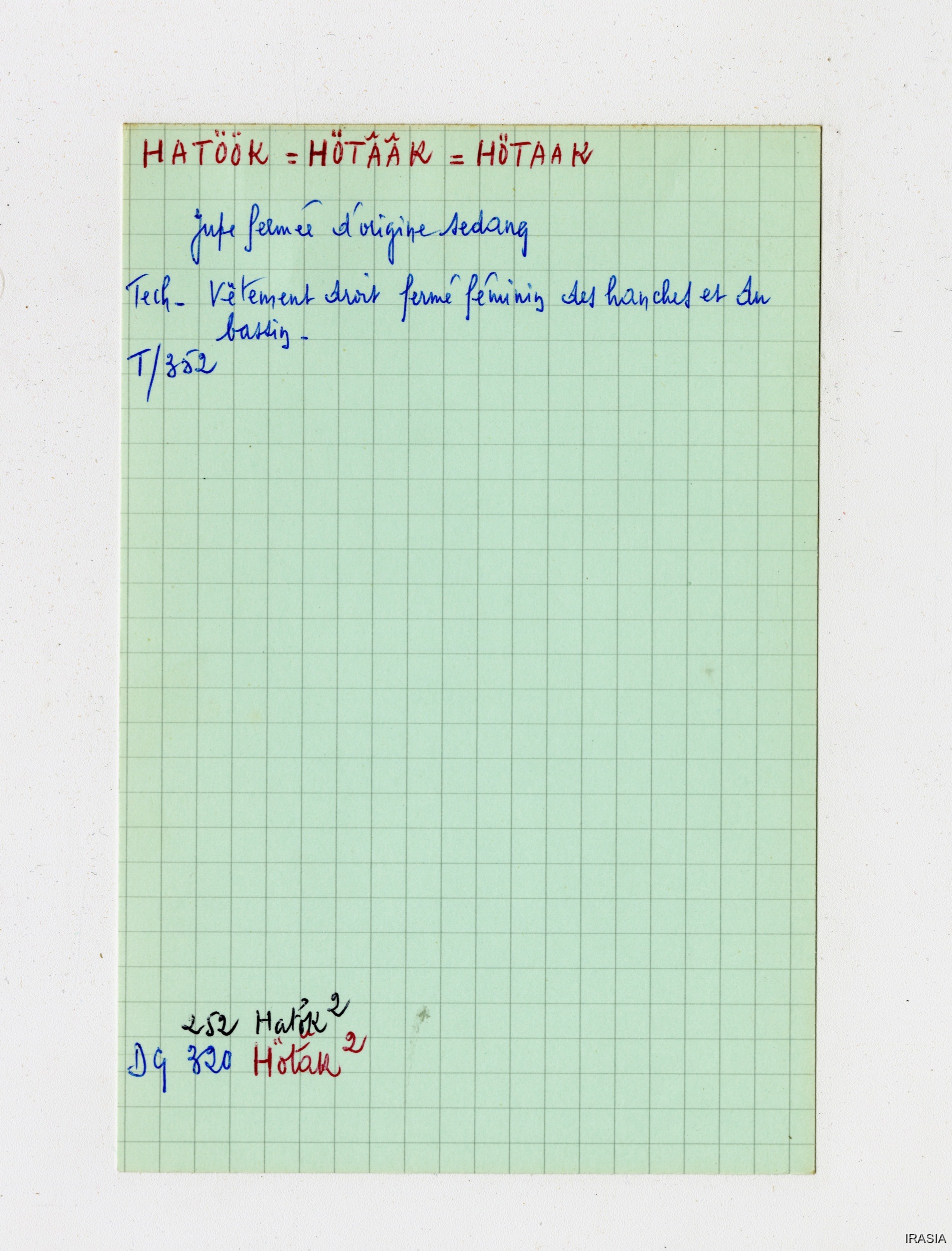 Quote this document Léger, Daniel [accessed: 2026/2/5]. "Lexique : Fiches Bahnar" (Object Id: 170294). In Lexique : Fiches Bahnar. ODSAS: https://www.odsas.net/object/170294.