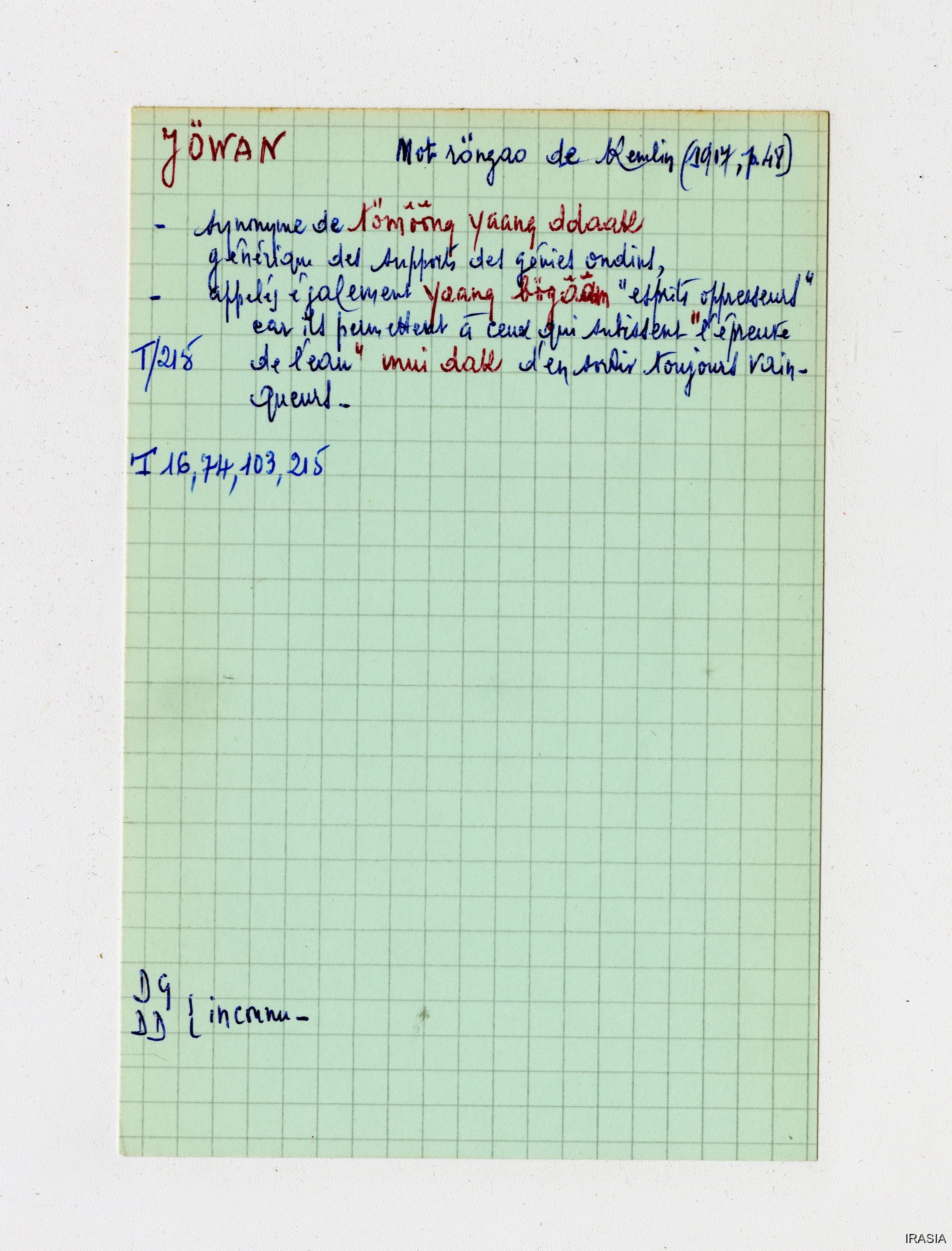 Léger, Daniel [accessed: 2026/2/5]. "Lexique : Fiches Bahnar" (Object Id: 170402). In
