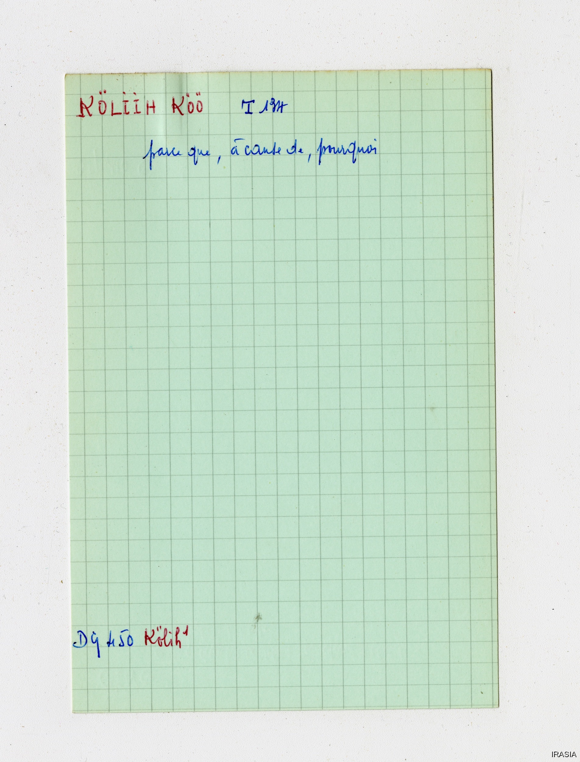 Fonds Léger : Thèse, Cahiers, Manuels, Missions...Lexique : Fiches Bahnar170463<< >>