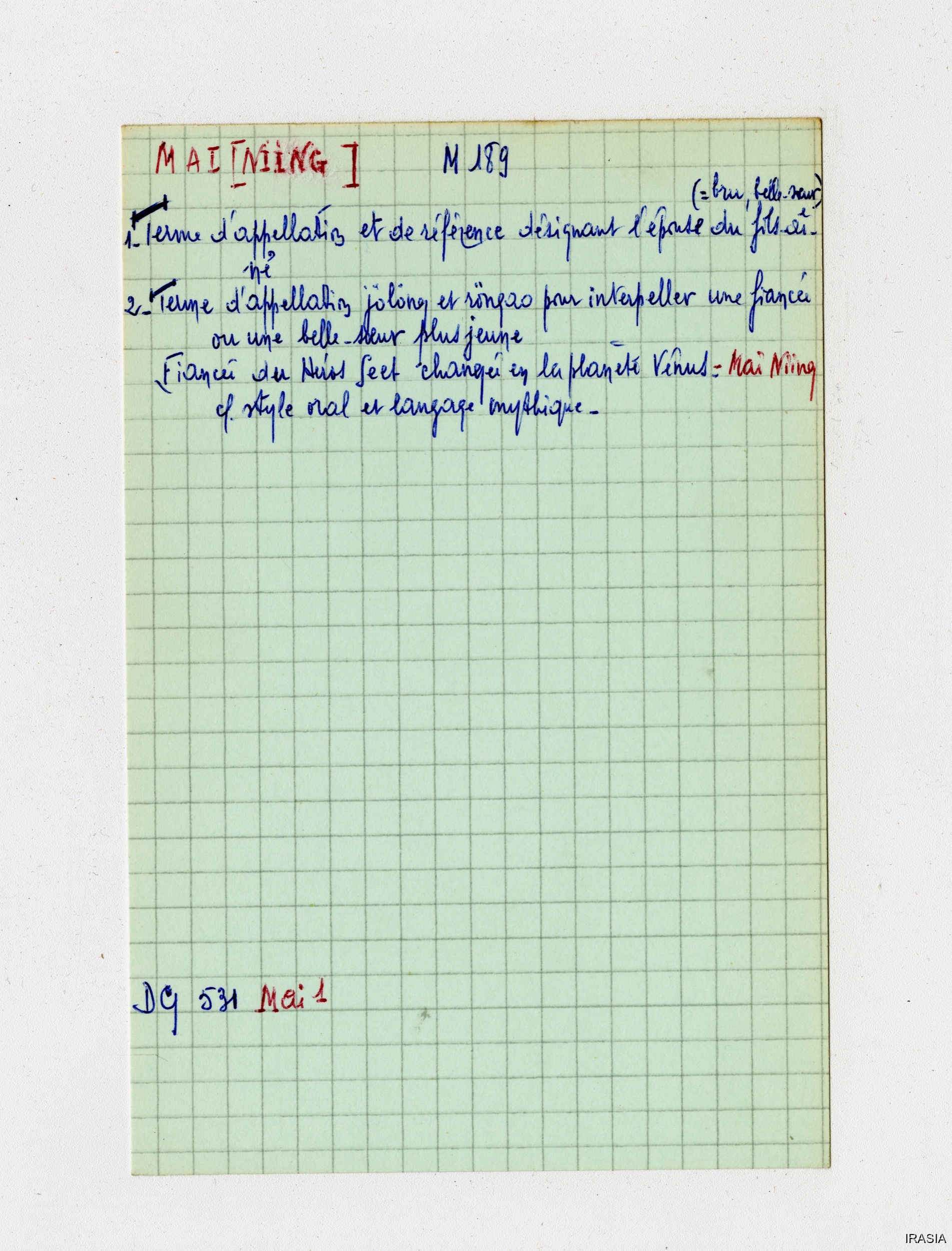 Léger, Daniel [accessed: 2026/2/5]. "Lexique : Fiches Bahnar" (Object Id: 170610). In