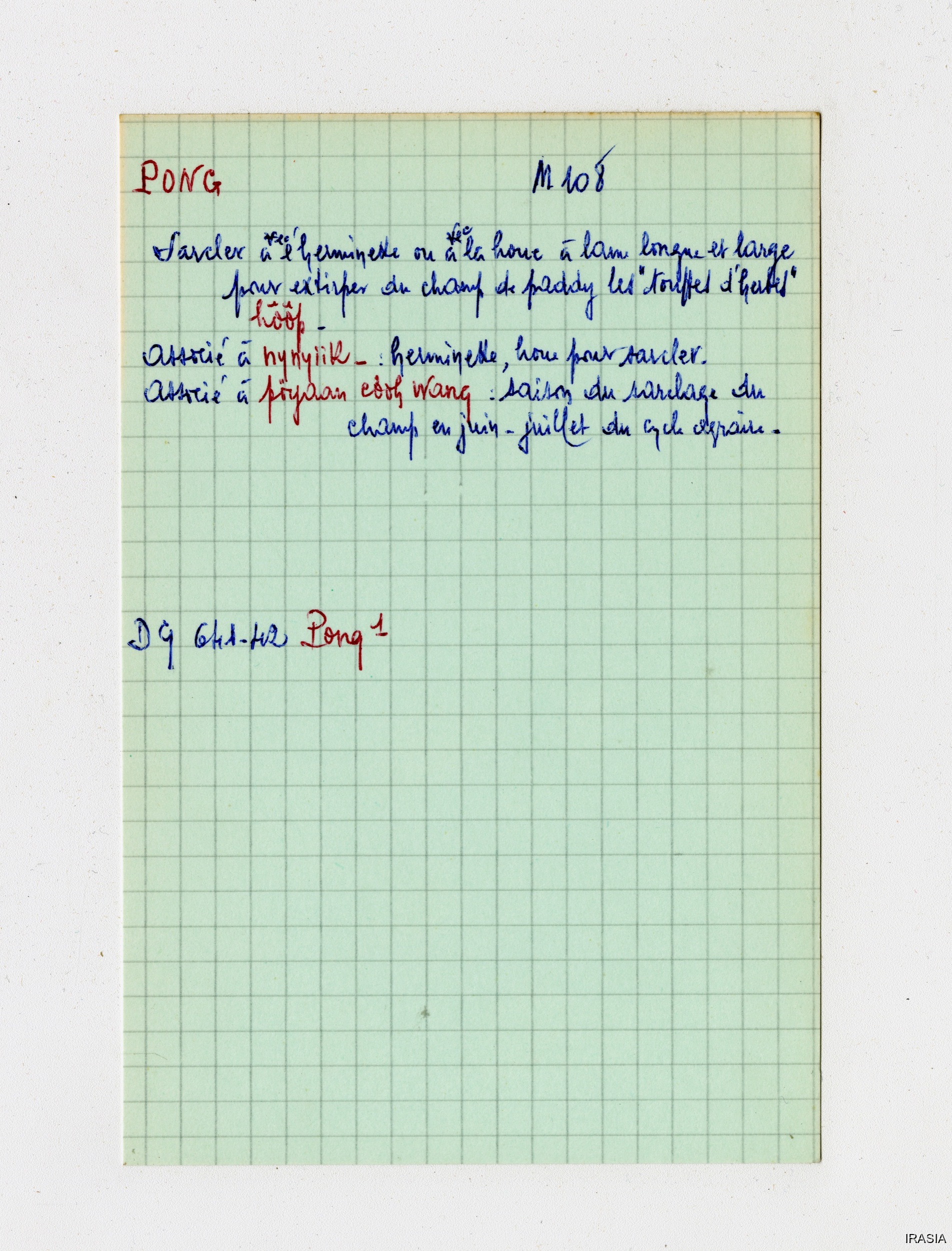 Quote this document Léger, Daniel [accessed: 2026/2/5]. "Lexique : Fiches Bahnar" (Object Id: 170732). In Lexique : Fiches Bahnar. ODSAS: https://www.odsas.net/object/170732.