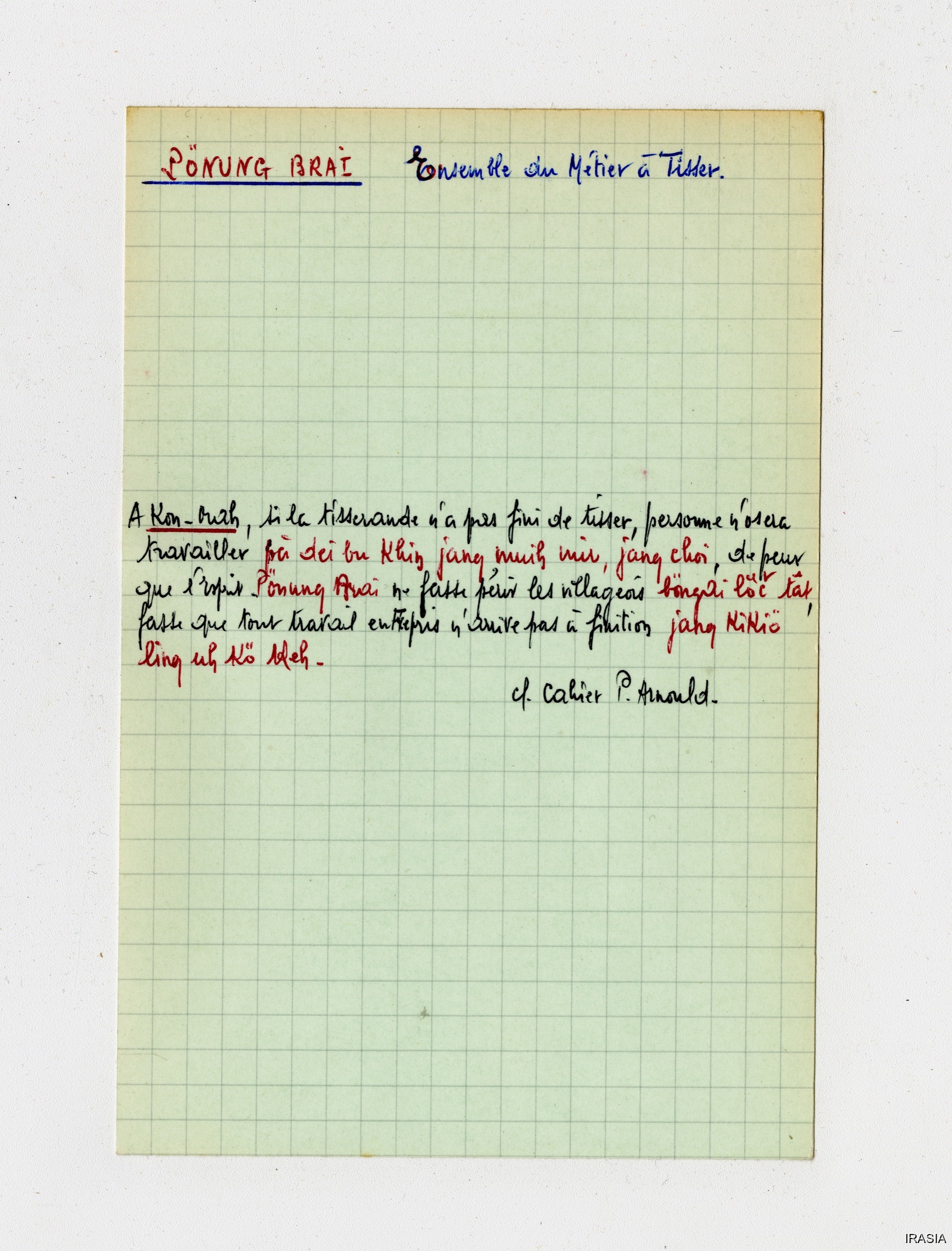 Fonds Léger : Thèse, Cahiers, Manuels, Missions...Lexique : Fiches Bahnar170777<< >>