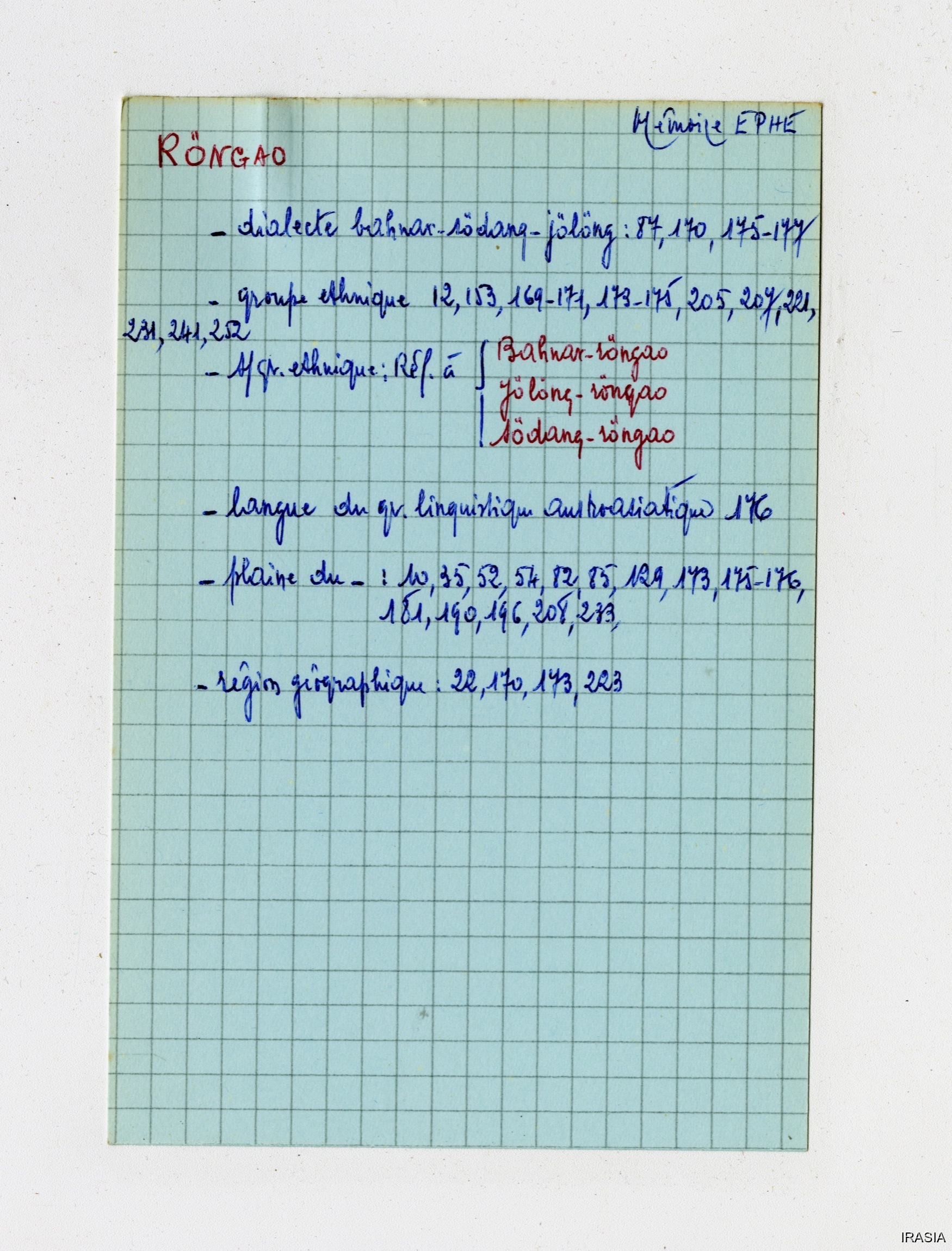 Léger, Daniel [accessed: 2026/2/5]. "Lexique : Fiches Bahnar" (Object Id: 170848). In