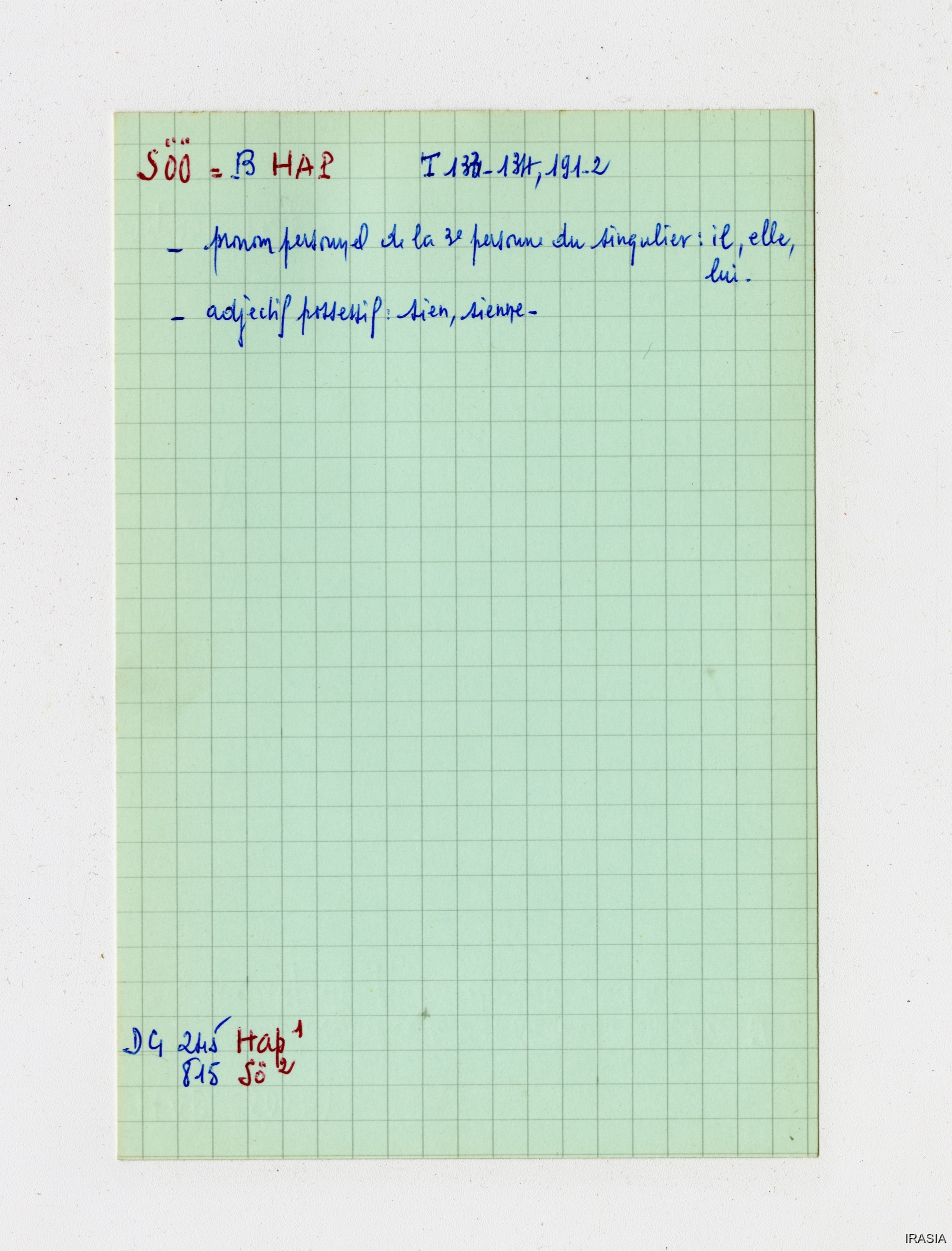 Fonds Léger : Thèse, Cahiers, Manuels, Missions...Lexique : Fiches Bahnar170897<< >>