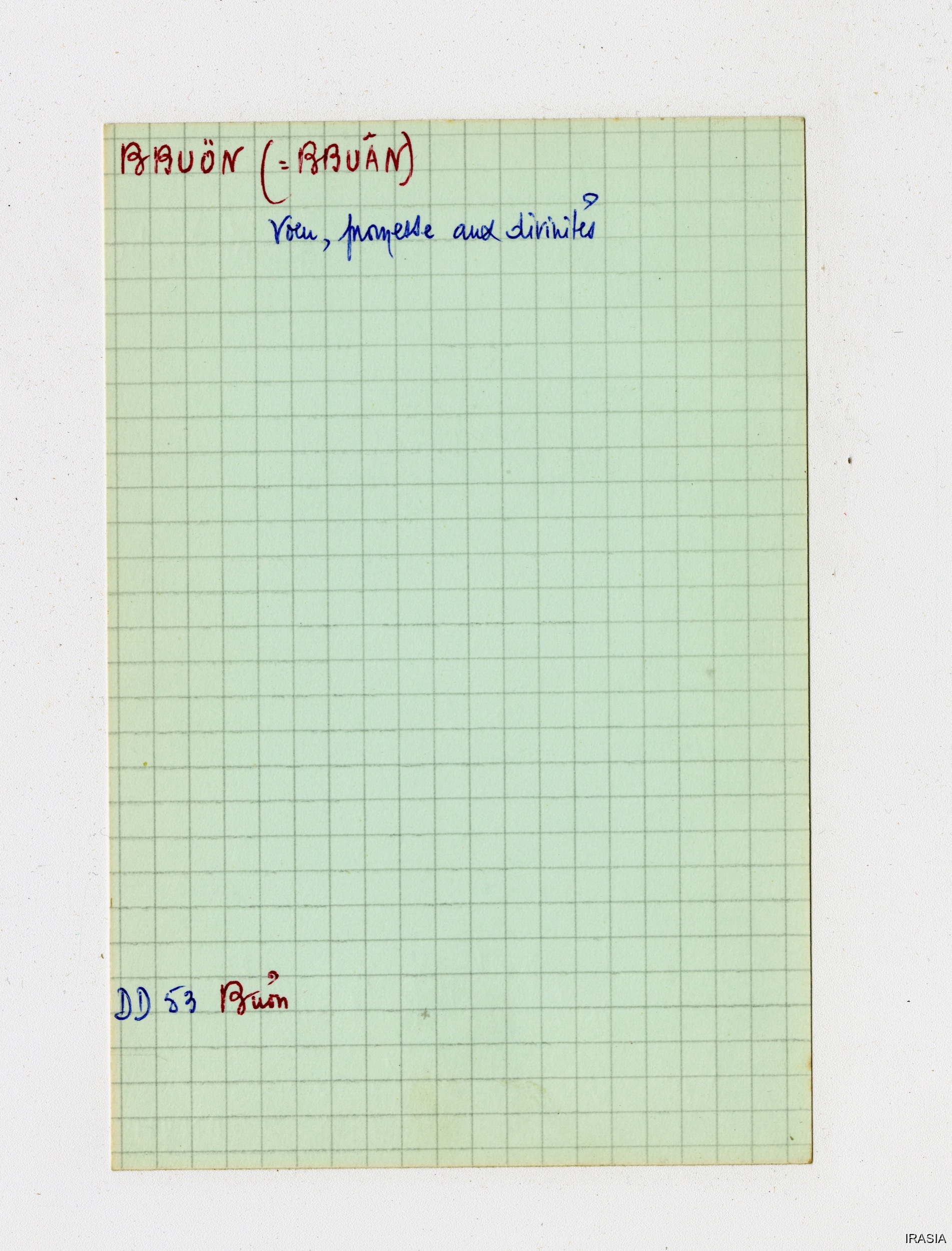 Quote this document Léger, Daniel [accessed: 2026/2/5]. "Lexique : Fiches Bahnar" (Object Id: 170921). In Lexique : Fiches Bahnar. ODSAS: https://www.odsas.net/object/170921.