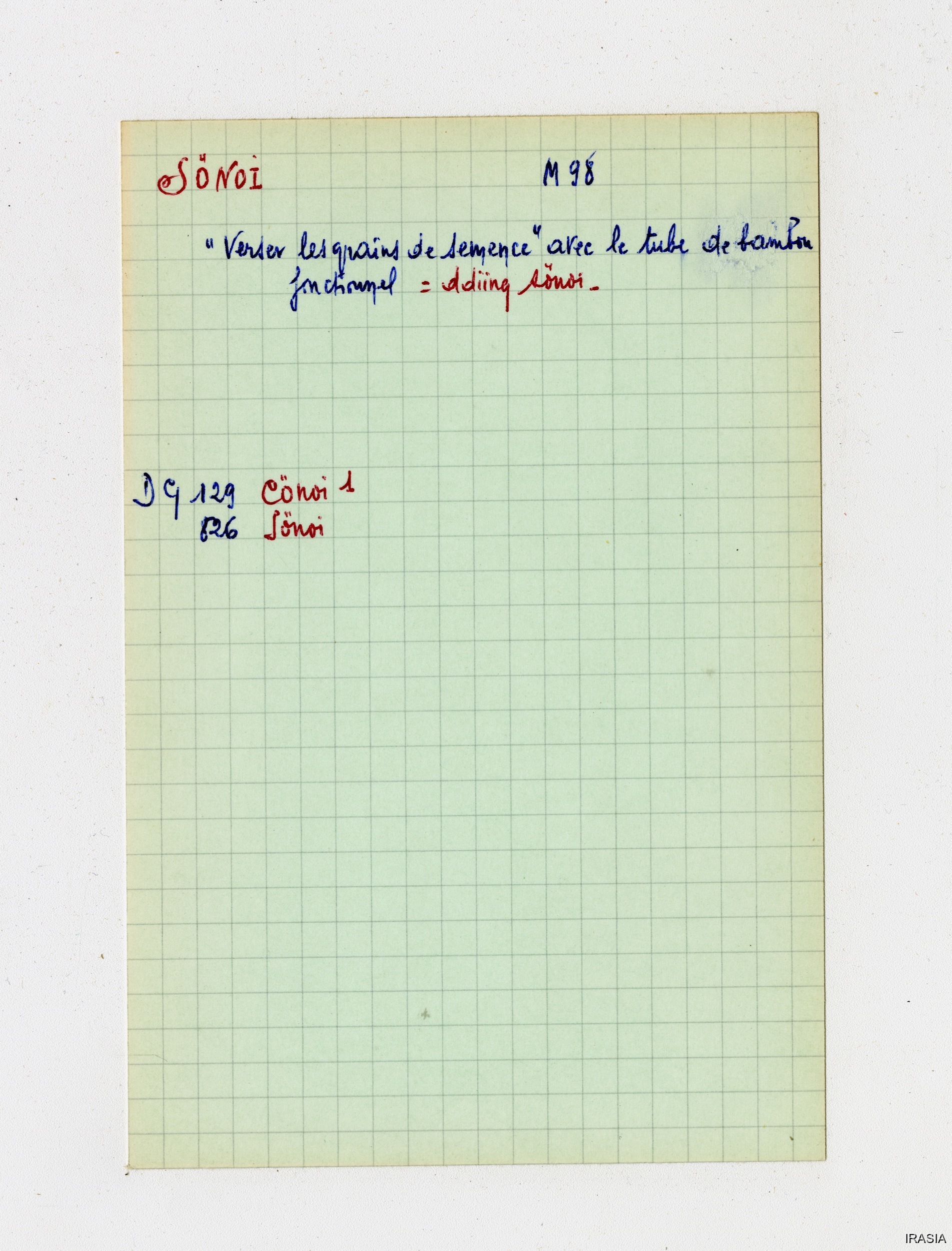 Quote this document Léger, Daniel [accessed: 2026/2/5]. "Lexique : Fiches Bahnar" (Object Id: 170945). In Lexique : Fiches Bahnar. ODSAS: https://www.odsas.net/object/170945.