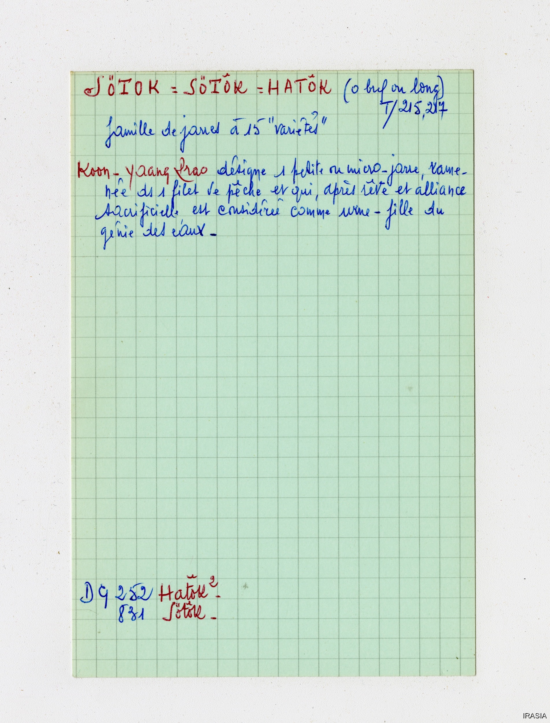 Quote this document Léger, Daniel [accessed: 2026/2/5]. "Lexique : Fiches Bahnar" (Object Id: 170953). In Lexique : Fiches Bahnar. ODSAS: https://www.odsas.net/object/170953.