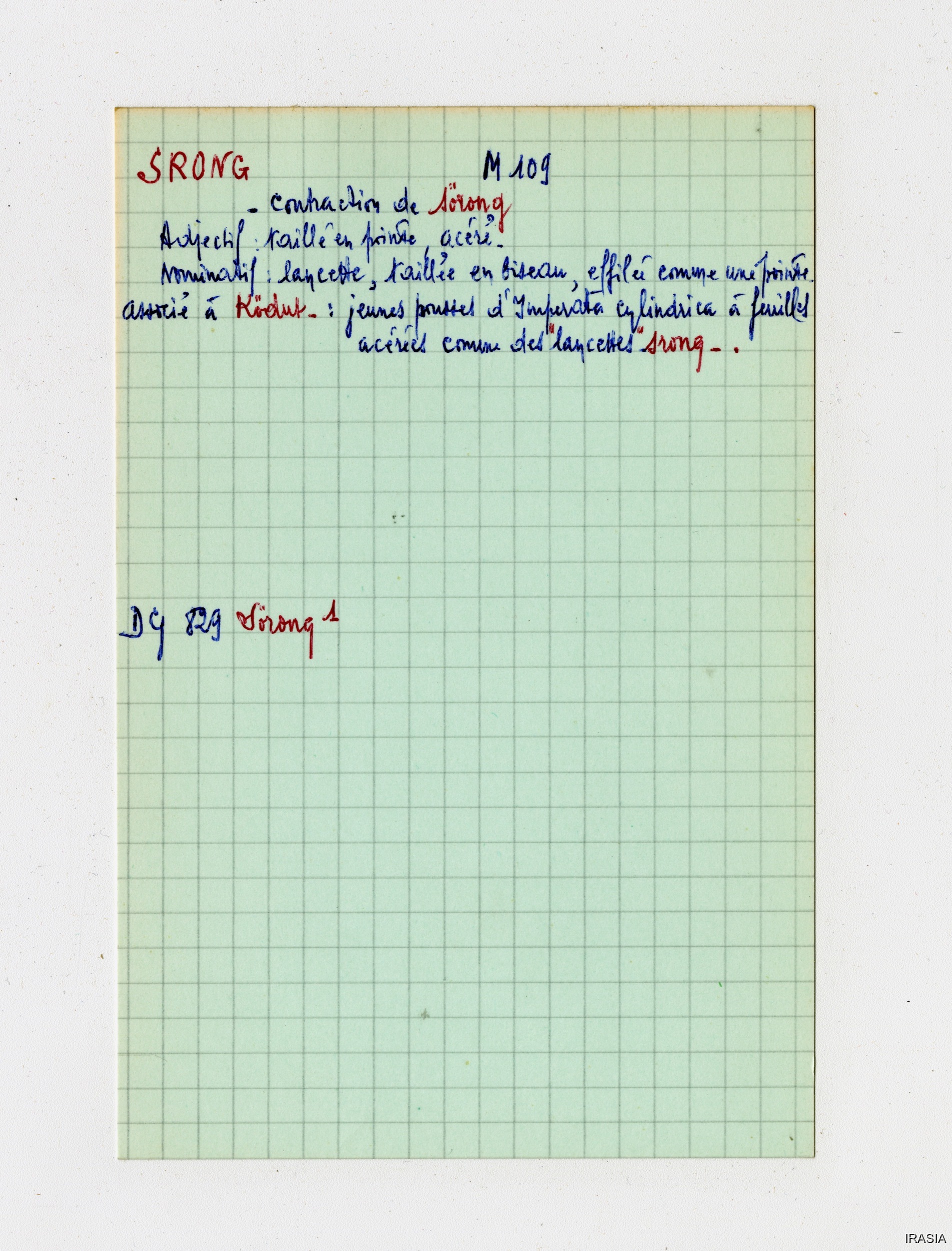 Quote this document Léger, Daniel [accessed: 2026/2/5]. "Lexique : Fiches Bahnar" (Object Id: 170957). In Lexique : Fiches Bahnar. ODSAS: https://www.odsas.net/object/170957.