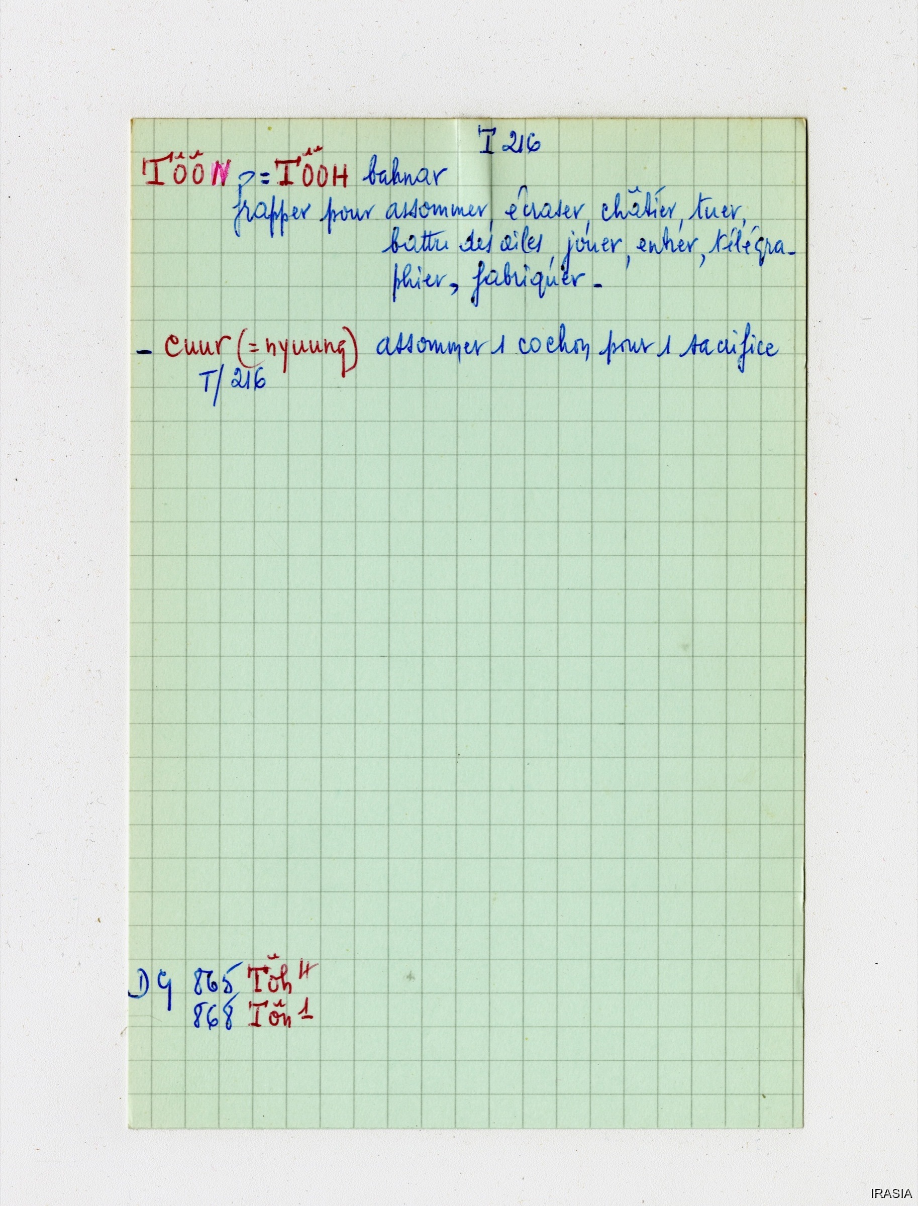 Léger, Daniel [accessed: 2026/2/5]. "Lexique : Fiches Bahnar" (Object Id: 171020). In