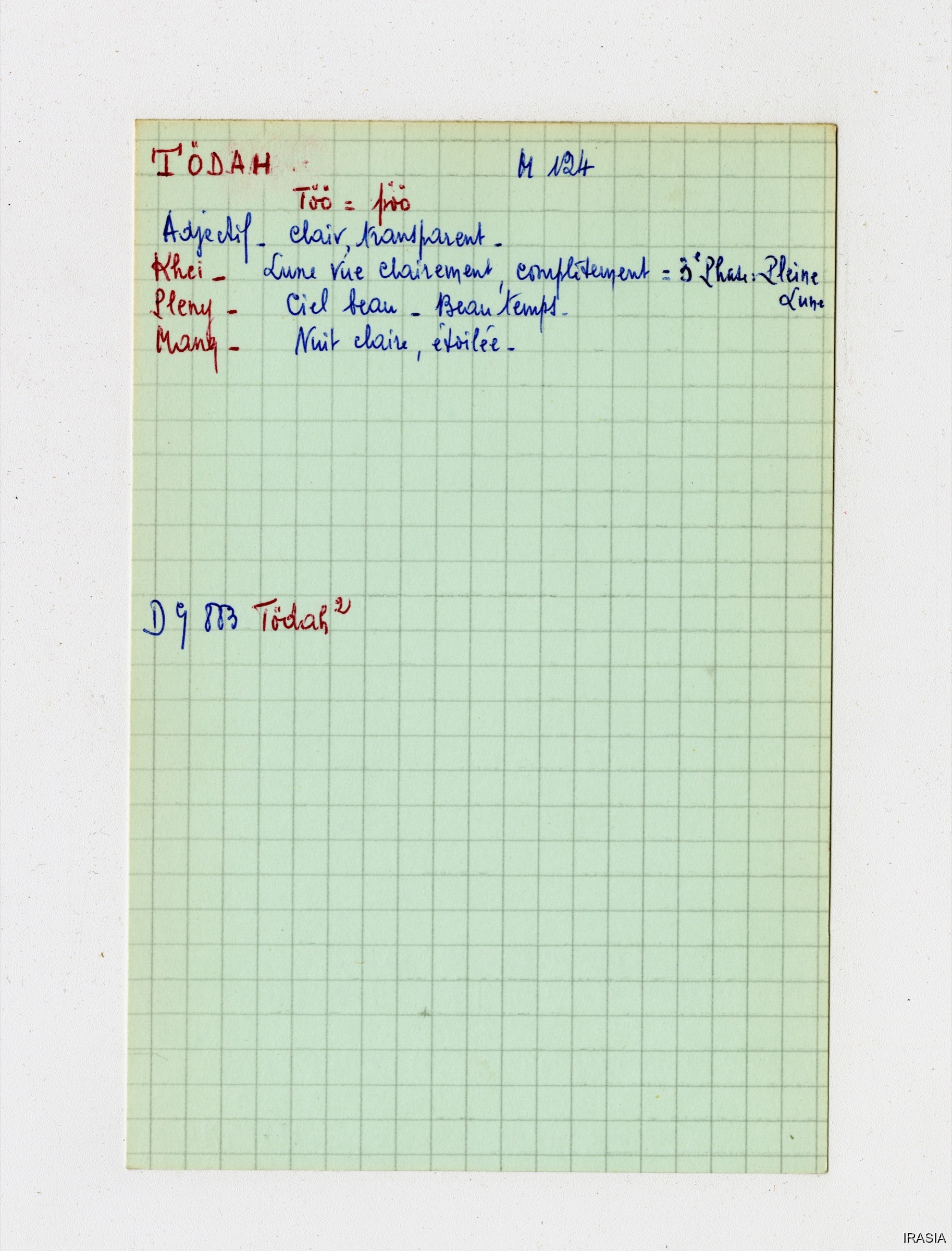 Quote this document Léger, Daniel [accessed: 2026/2/5]. "Lexique : Fiches Bahnar" (Object Id: 171034). In Lexique : Fiches Bahnar. ODSAS: https://www.odsas.net/object/171034.