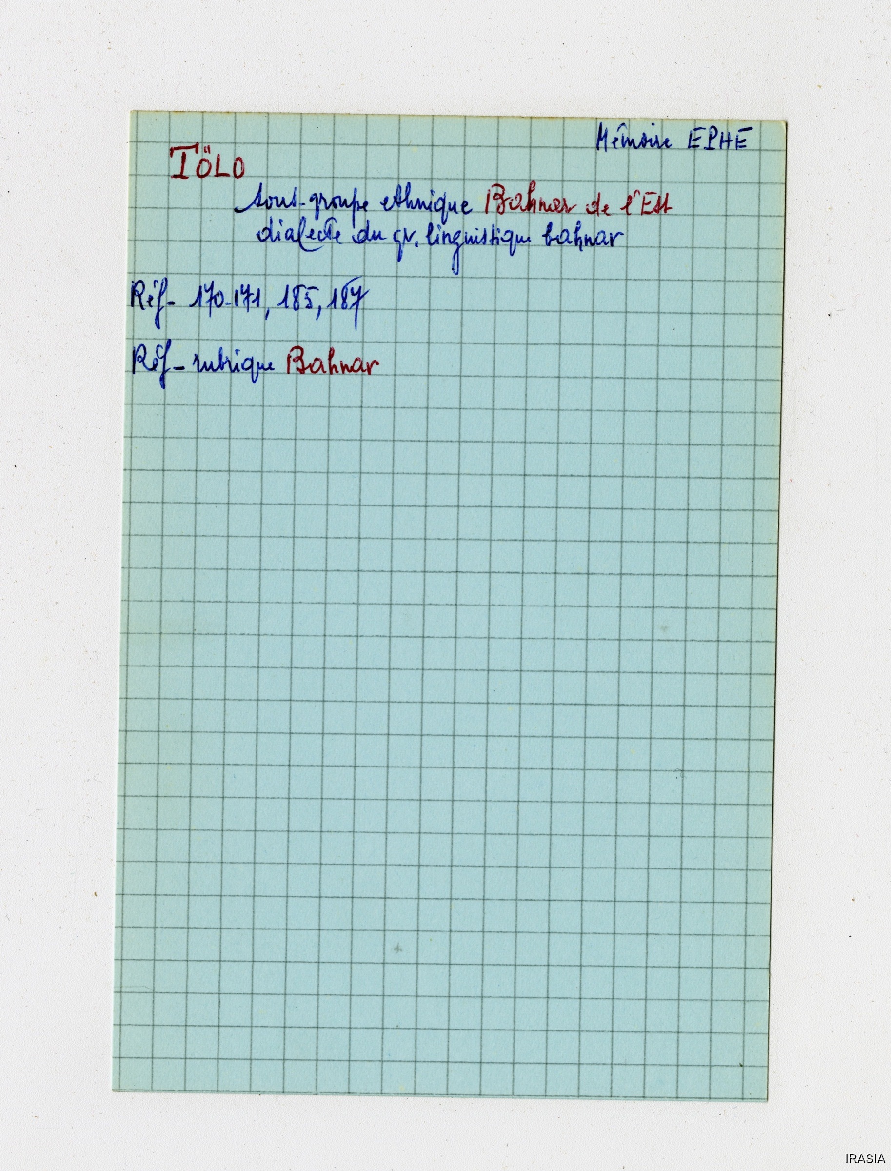 Léger, Daniel [accessed: 2026/2/5]. "Lexique : Fiches Bahnar" (Object Id: 171074). In