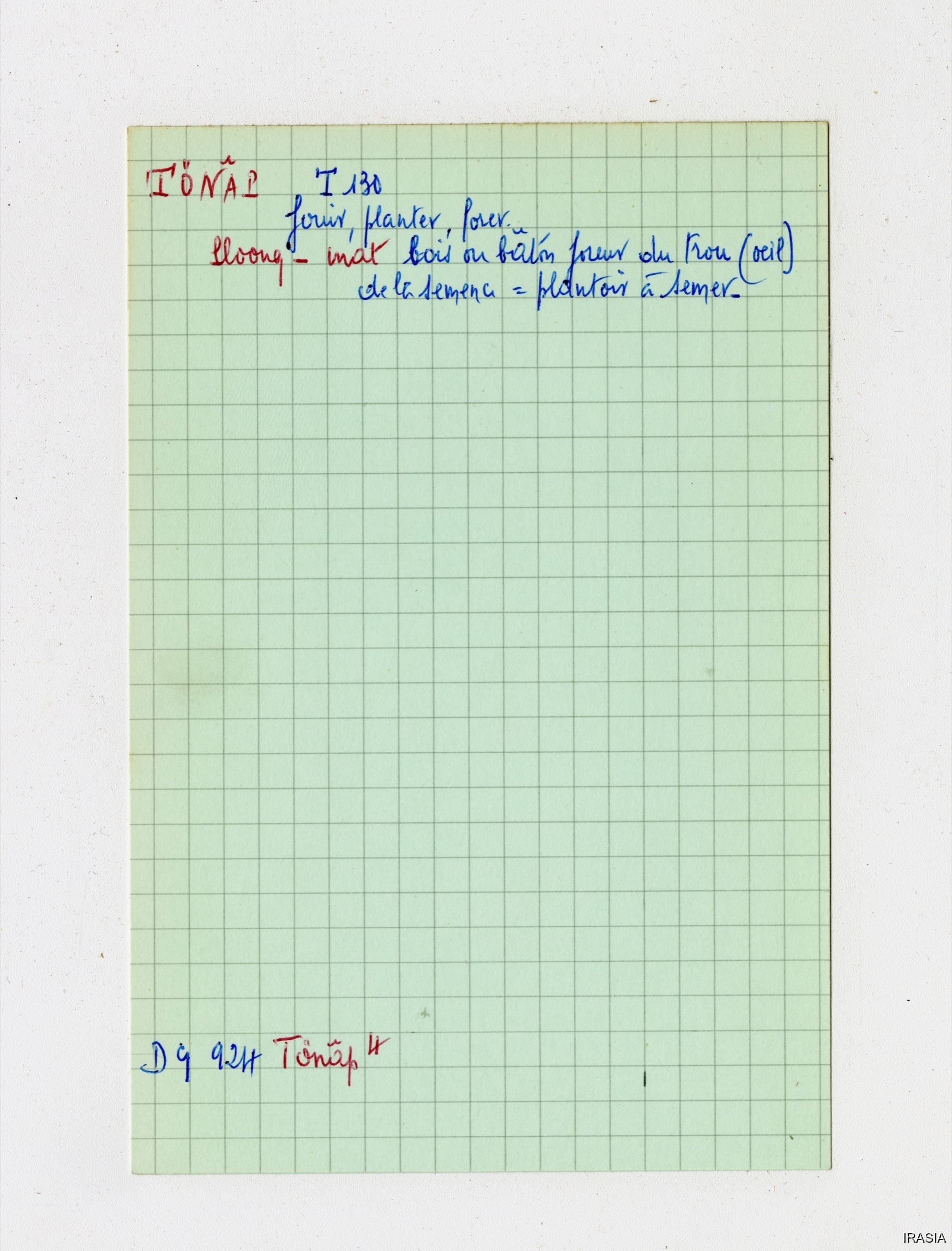 Quote this document Léger, Daniel [accessed: 2026/2/5]. "Lexique : Fiches Bahnar" (Object Id: 171087). In Lexique : Fiches Bahnar. ODSAS: https://www.odsas.net/object/171087.