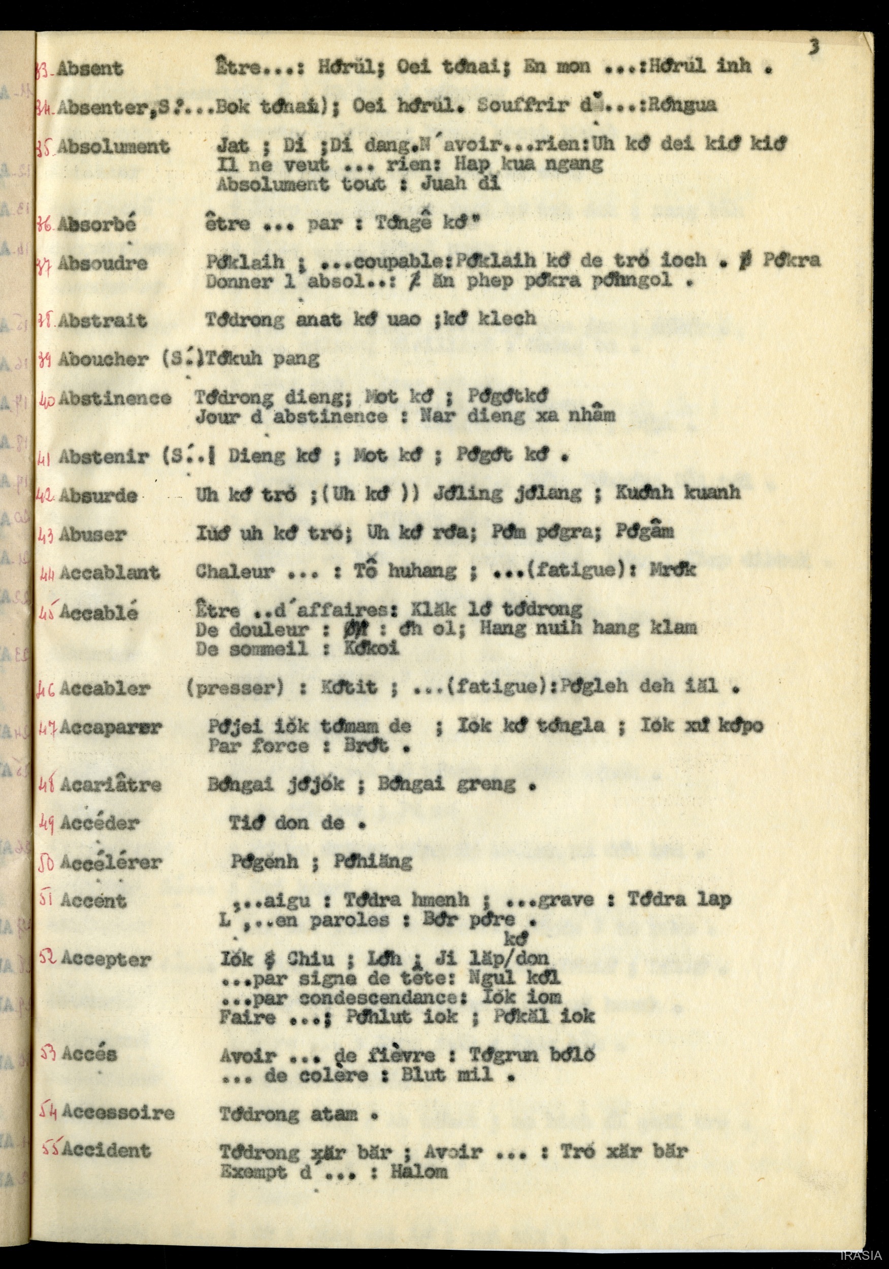 Léger, Daniel 1967 [accessed: 2026/2/5]. "Lexique : dictionnaire Français - Bahnar AD" (Object Id: 171308). In