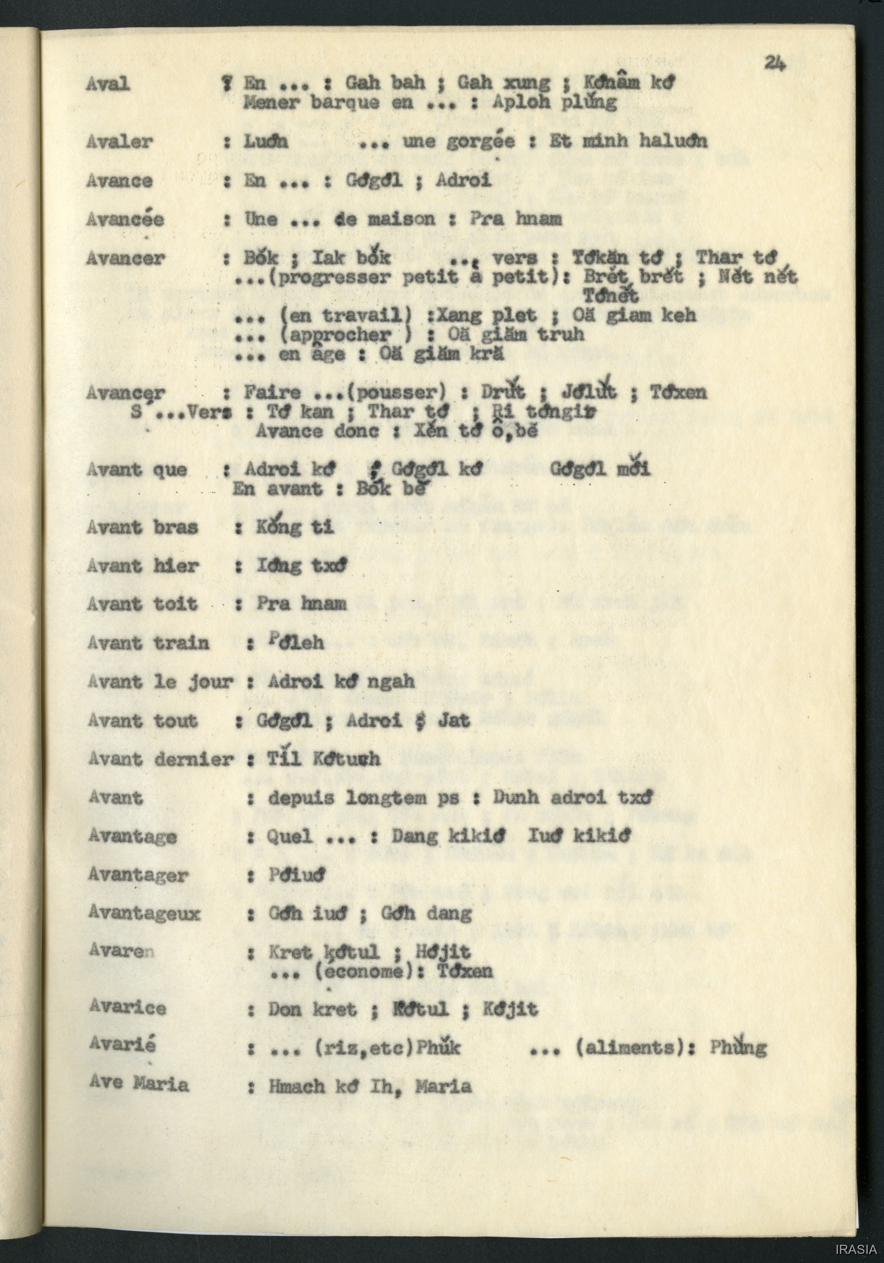 Quote this document Léger, Daniel 1967 [accessed: 2026/2/5]. "Lexique : dictionnaire Français - Bahnar AD" (Object Id: 171329). In Lexique : dictionnaire Français - Bahnar AD. ODSAS: https://www.odsas.net/object/171329.