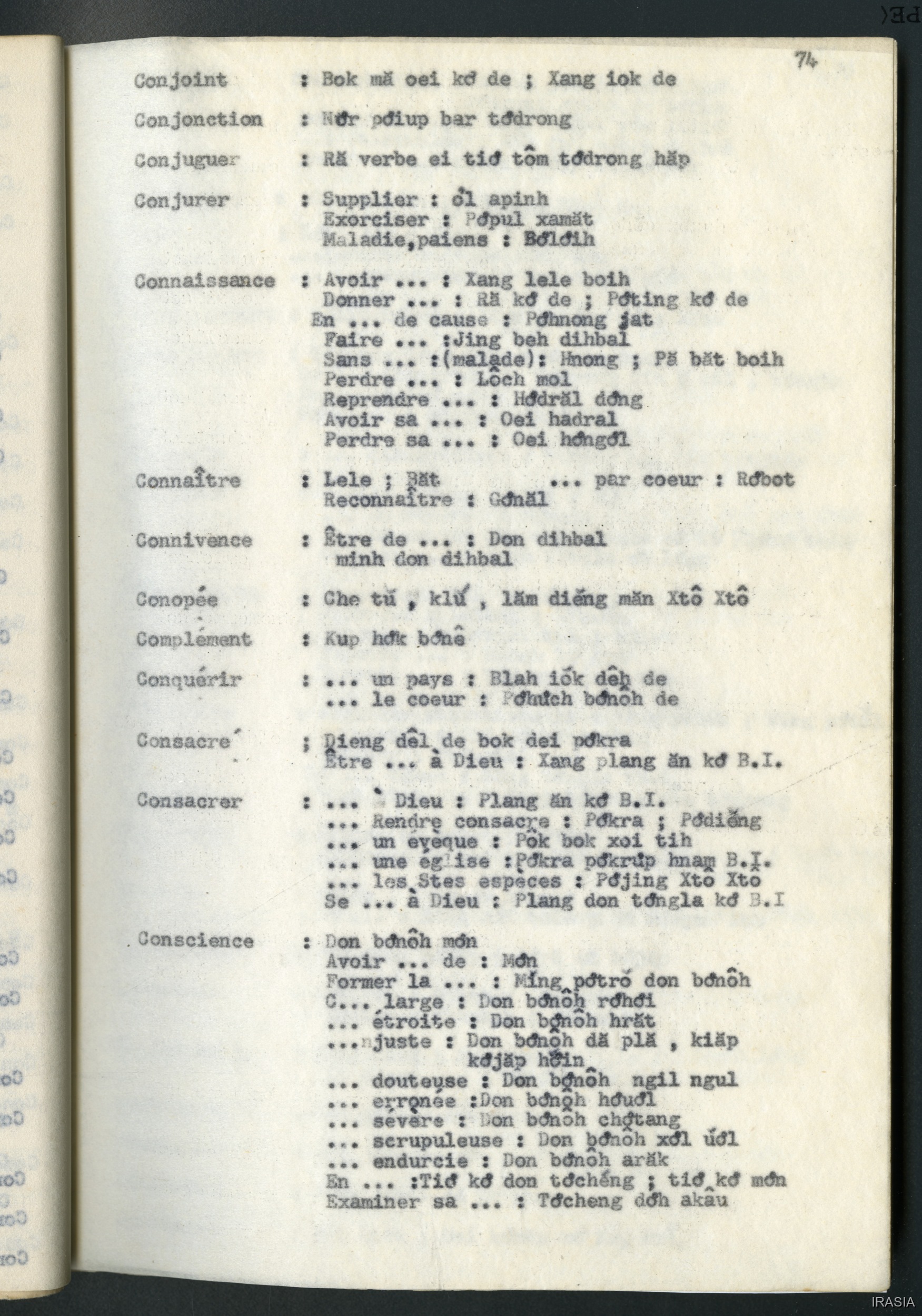 Quote this document Léger, Daniel 1967 [accessed: 2026/2/5]. "Lexique : dictionnaire Français - Bahnar AD" (Object Id: 171378). In Lexique : dictionnaire Français - Bahnar AD. ODSAS: https://www.odsas.net/object/171378.