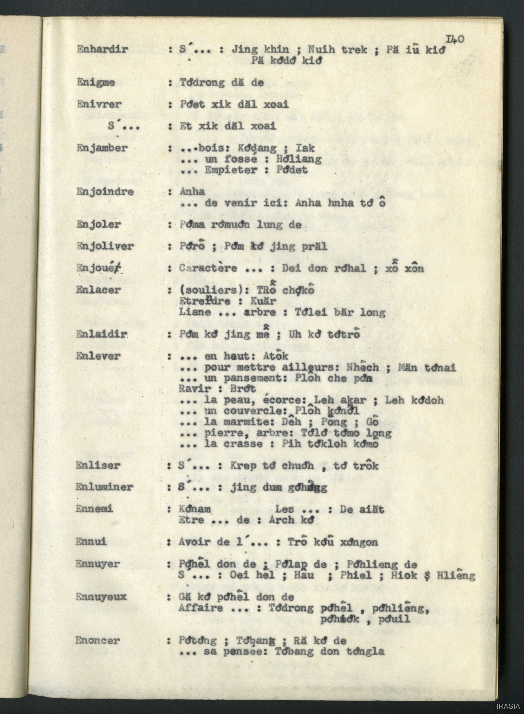 Quote this document Léger, Daniel [accessed: 2026/2/5]. "Lexique : dictionnaire français - bahnar EN" (Object Id: 171448). In Lexique : dictionnaire français - bahnar EN. ODSAS: https://www.odsas.net/object/171448.