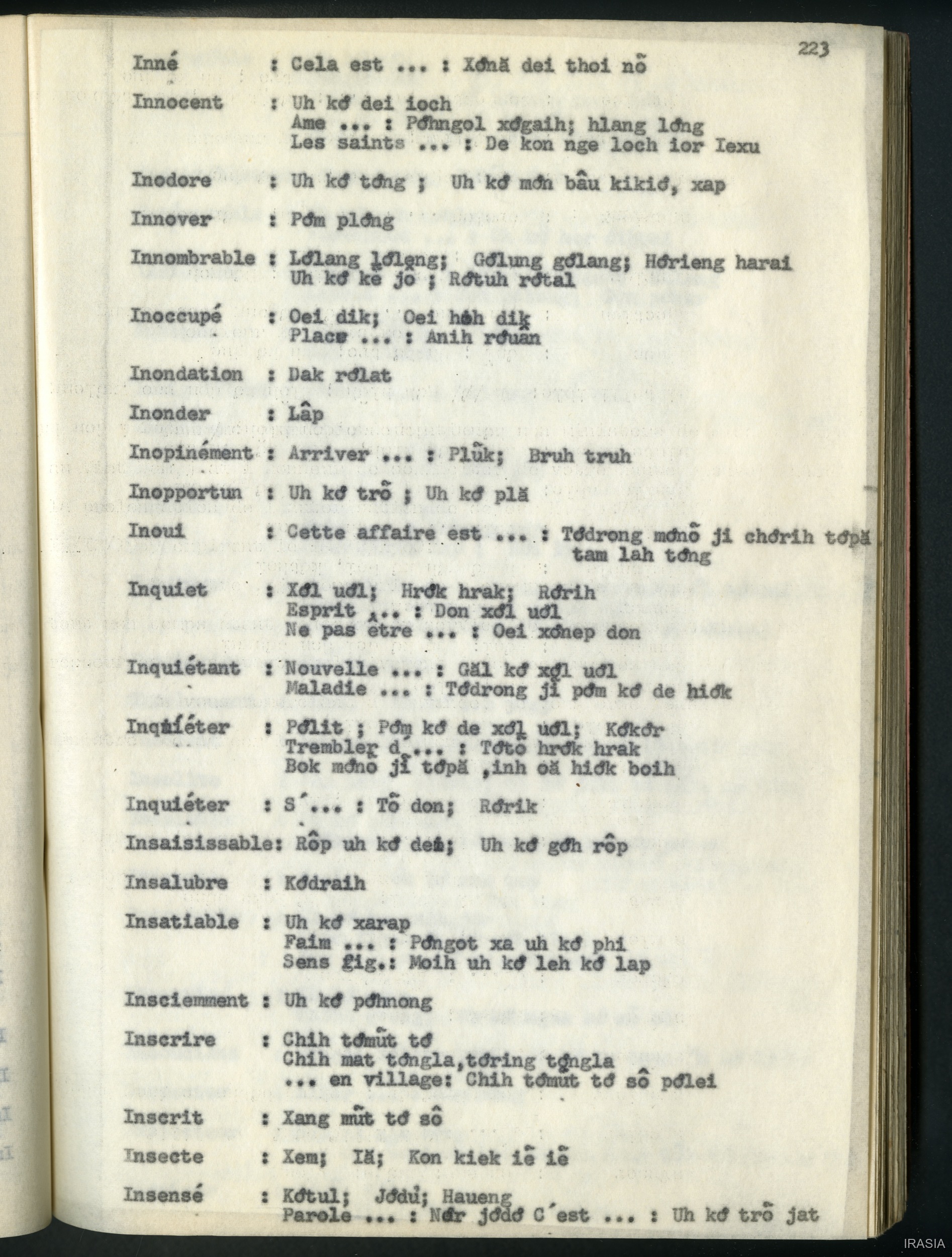 Quote this document Léger, Daniel [accessed: 2026/2/5]. "Lexique : dictionnaire français - bahnar EN" (Object Id: 171531). In Lexique : dictionnaire français - bahnar EN. ODSAS: https://www.odsas.net/object/171531.