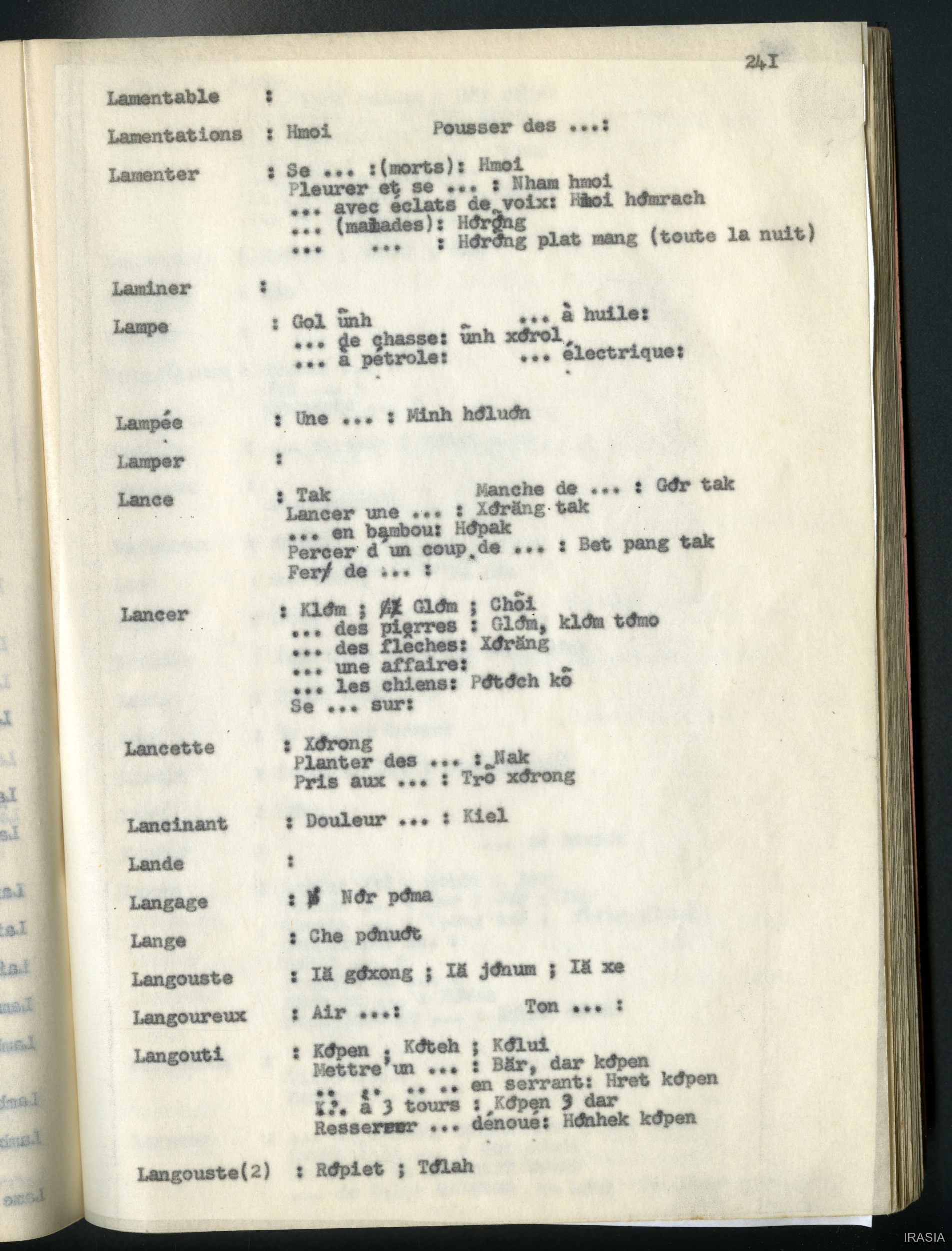 Quote this document Léger, Daniel [accessed: 2026/2/5]. "Lexique : dictionnaire français - bahnar EN" (Object Id: 171549). In Lexique : dictionnaire français - bahnar EN. ODSAS: https://www.odsas.net/object/171549.