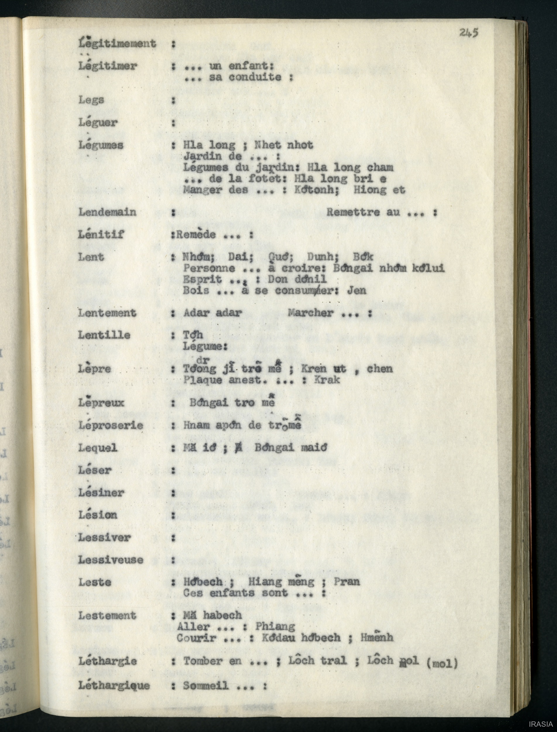 Quote this document Léger, Daniel [accessed: 2026/2/5]. "Lexique : dictionnaire français - bahnar EN" (Object Id: 171553). In Lexique : dictionnaire français - bahnar EN. ODSAS: https://www.odsas.net/object/171553.