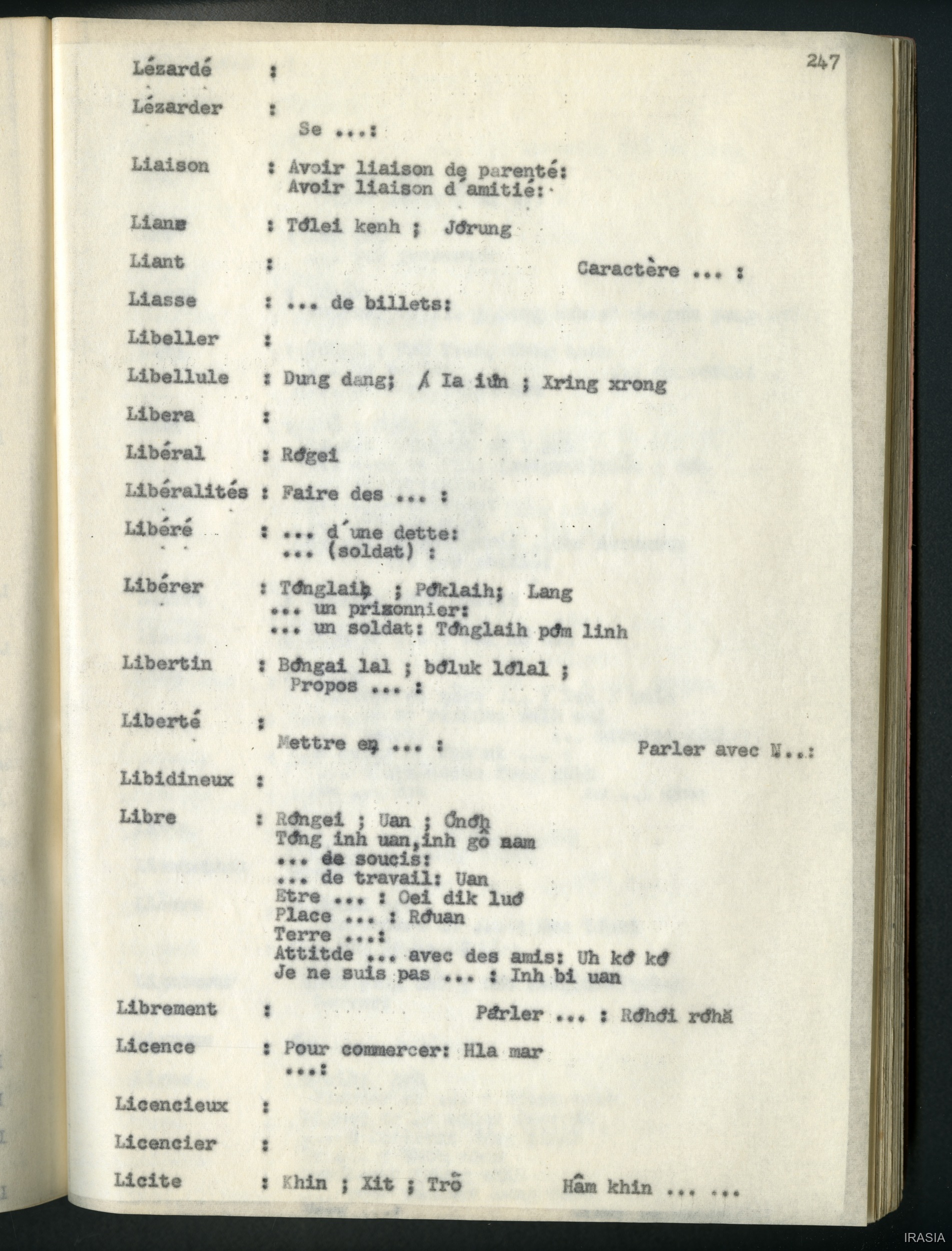 Quote this document Léger, Daniel [accessed: 2026/2/5]. "Lexique : dictionnaire français - bahnar EN" (Object Id: 171555). In Lexique : dictionnaire français - bahnar EN. ODSAS: https://www.odsas.net/object/171555.