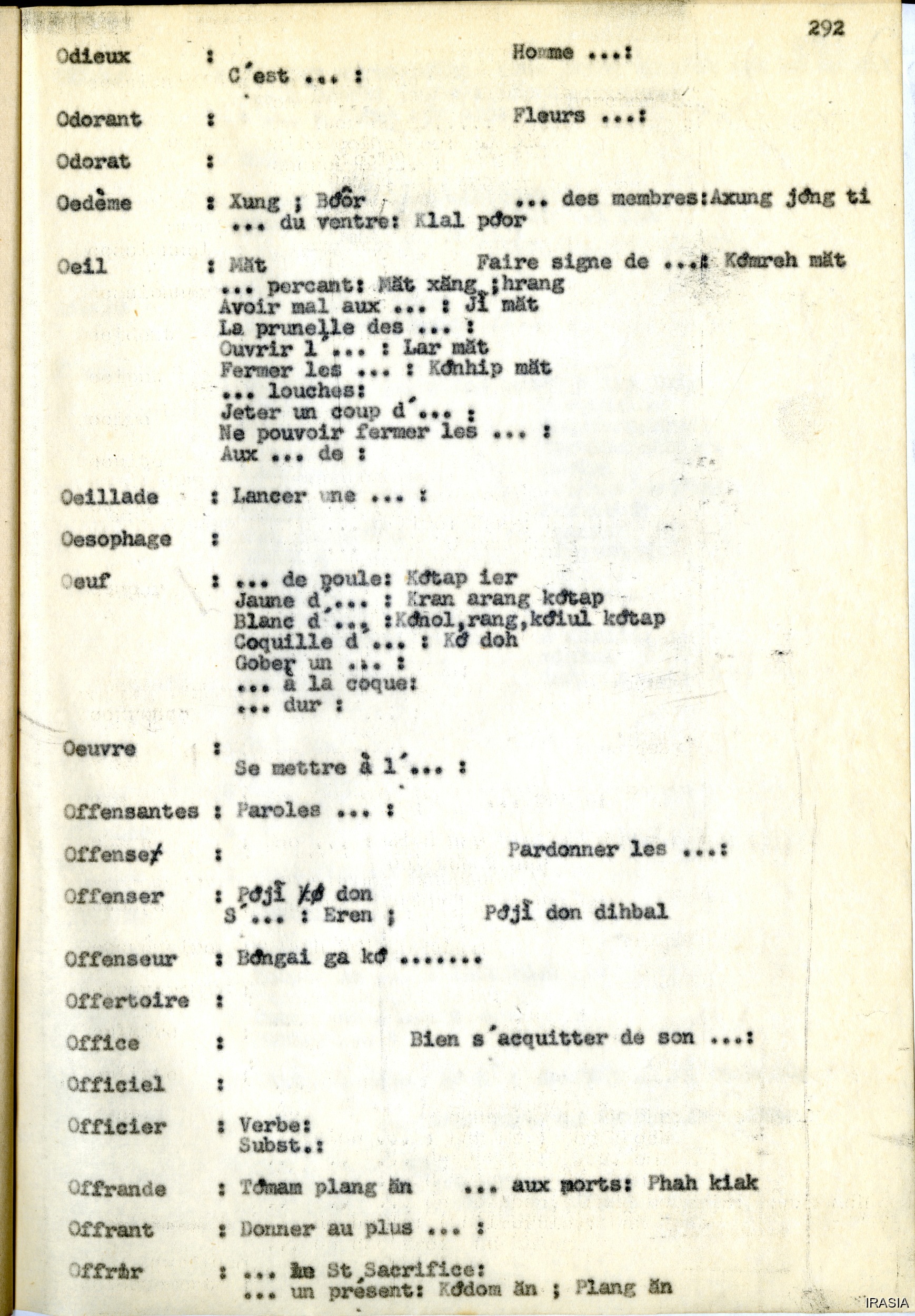 Quote this document Léger, Daniel [accessed: 2026/2/5]. "Lexique : dictionnaire Français - Bahnar OZ" (Object Id: 171602). In Lexique : dictionnaire Français - Bahnar OZ. ODSAS: https://www.odsas.net/object/171602.