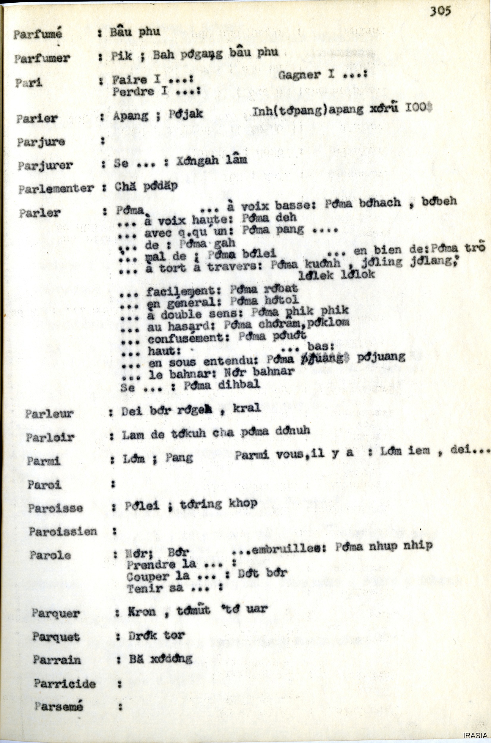 Léger, Daniel [accessed: 2026/2/5]. "Lexique : dictionnaire Français - Bahnar OZ" (Object Id: 171616). In