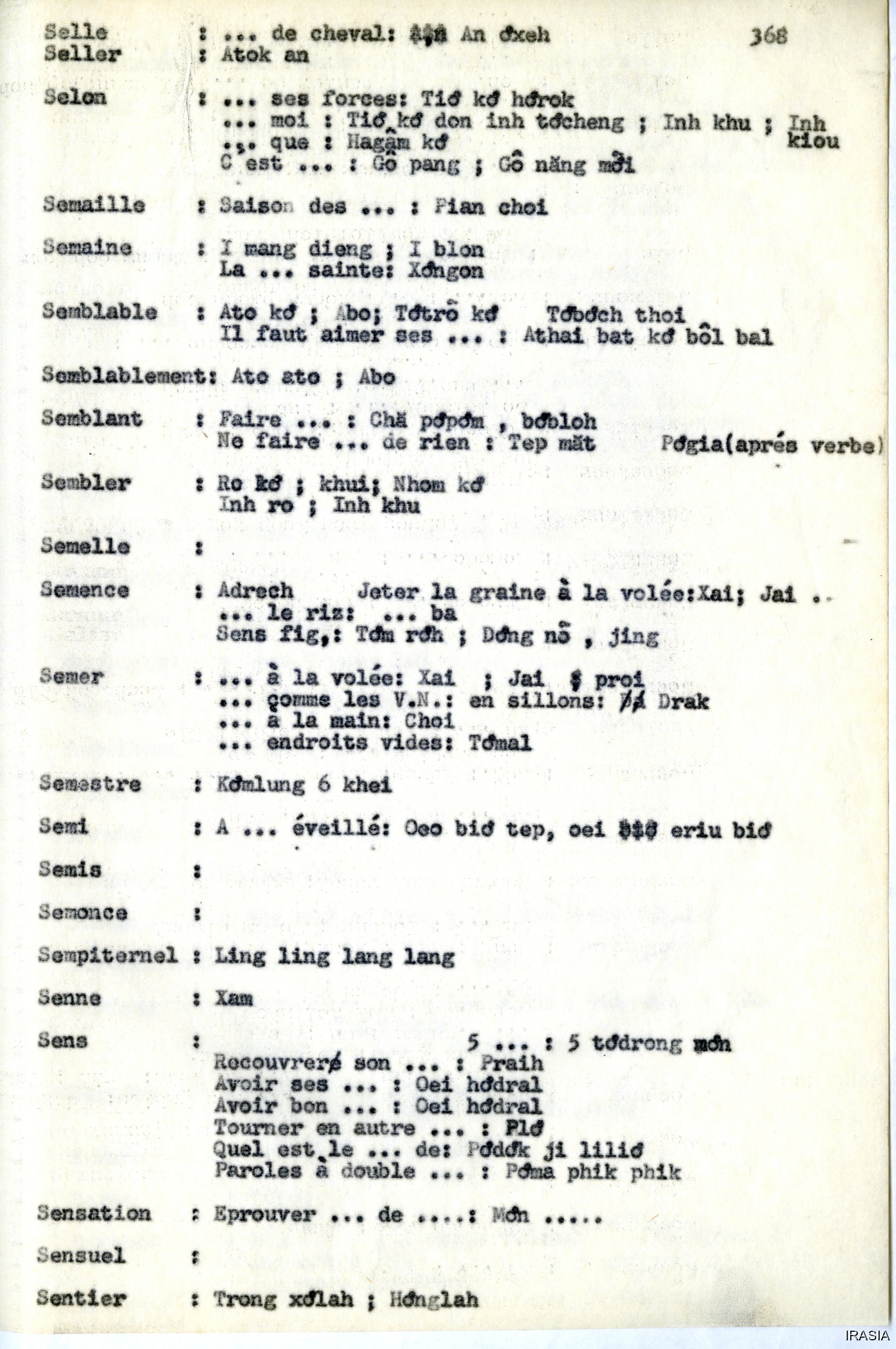 Quote this document Léger, Daniel [accessed: 2026/2/5]. "Lexique : dictionnaire Français - Bahnar OZ" (Object Id: 171680). In Lexique : dictionnaire Français - Bahnar OZ. ODSAS: https://www.odsas.net/object/171680.