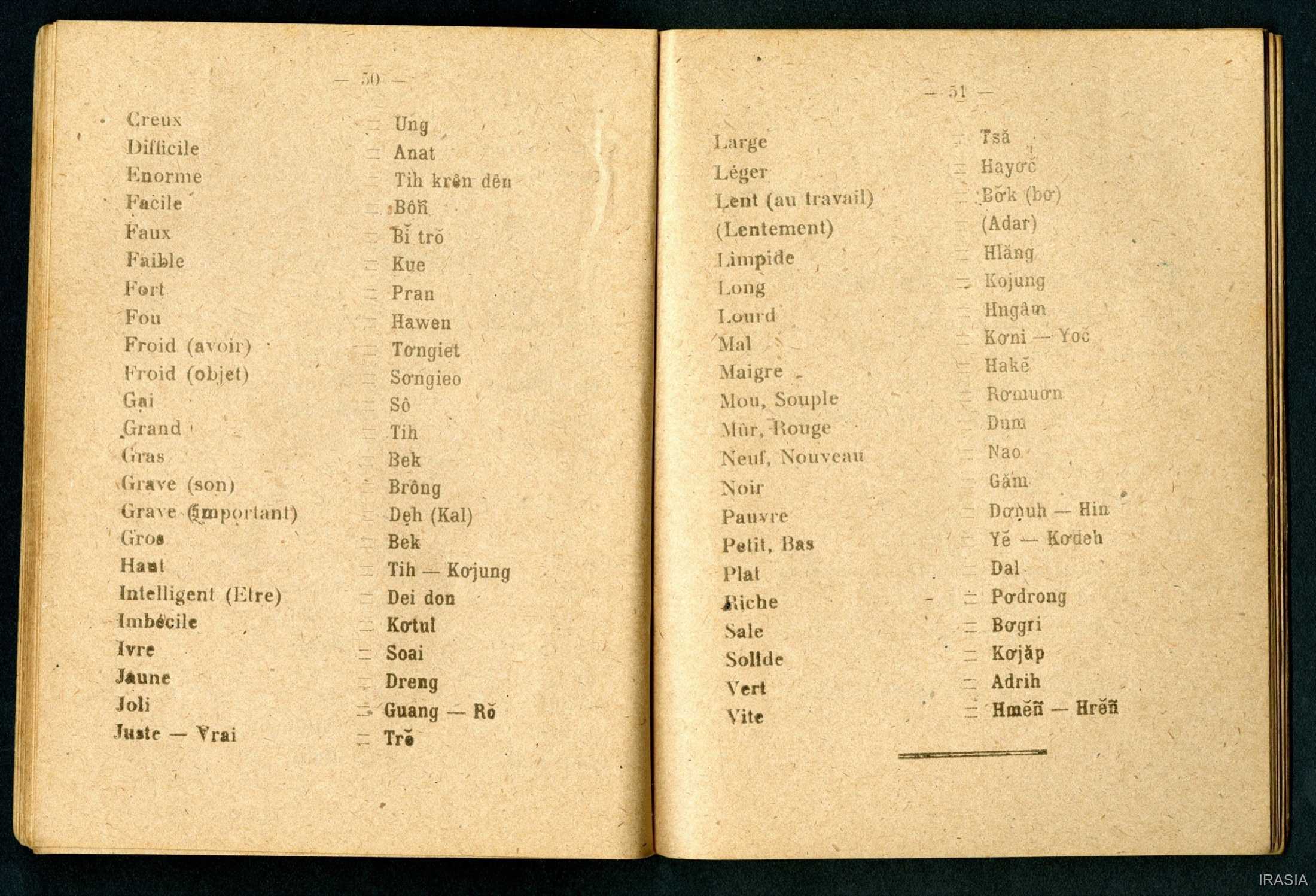 Quote this document Léger, Daniel 1944 [accessed: 2026/2/5]. "Lexique : Manuel de conversation Français - Bahnar" (Object Id: 171753). In Lexique : Manuel de conversation Français - Bahnar. ODSAS: https://www.odsas.net/object/171753.