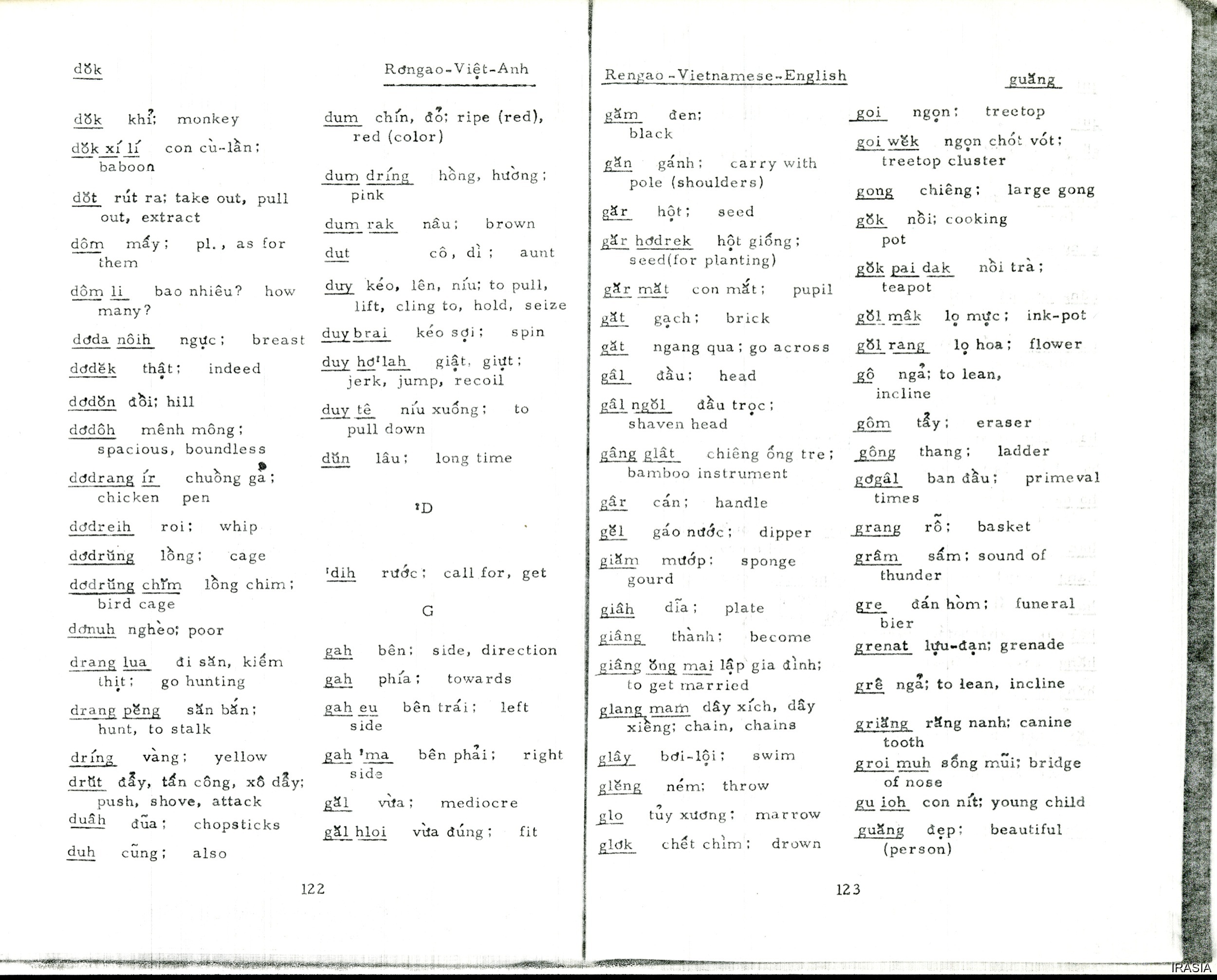 Quote this document Léger, Daniel 1977 [accessed: 2026/2/5]. "Lexique : Rengao vocabulary" (Object Id: 171847). In Lexique : Rengao vocabulary. ODSAS: https://www.odsas.net/object/171847.