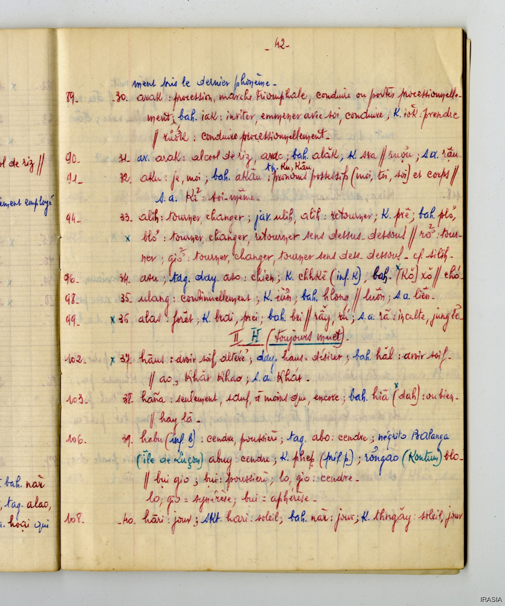 Fonds Léger : Thèse, Cahiers, Manuels, Missions...Cahier : éléments de linguistique T1171957<< >>