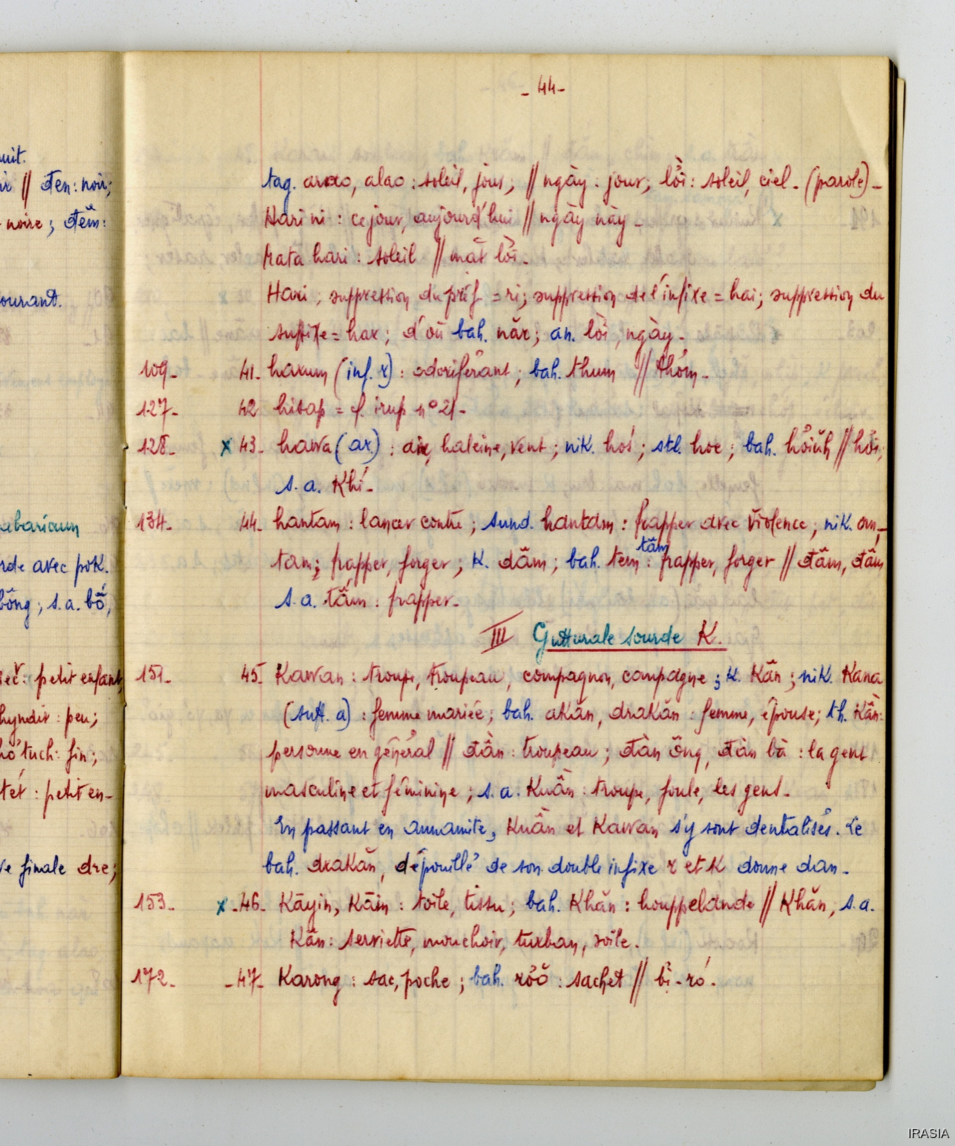 Fonds Léger : Thèse, Cahiers, Manuels, Missions...Cahier : éléments de linguistique T1171959<< >>