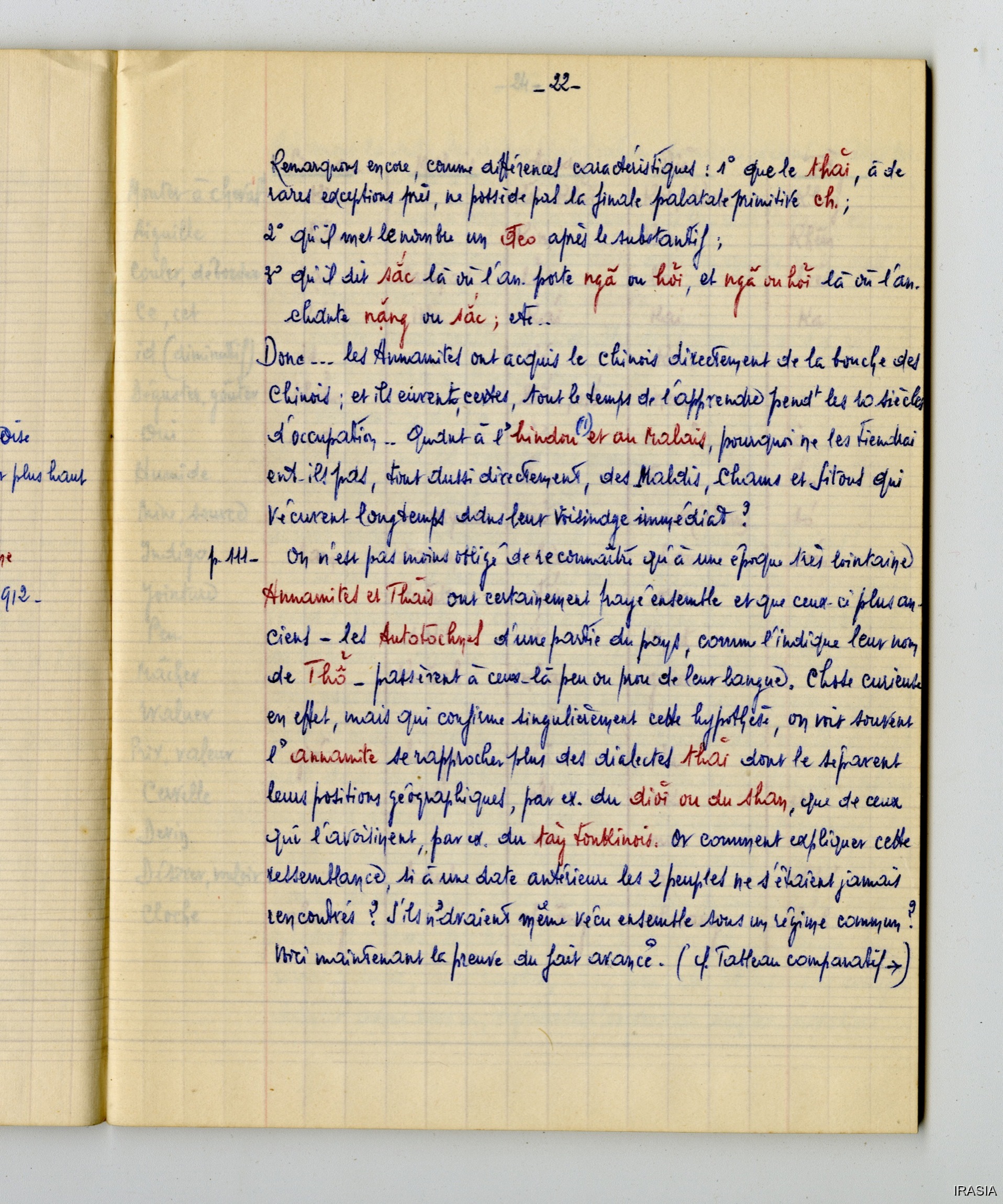 Fonds Léger : Thèse, Cahiers, Manuels, Missions...Cahier : éléments de linguistique T3172119<< >>