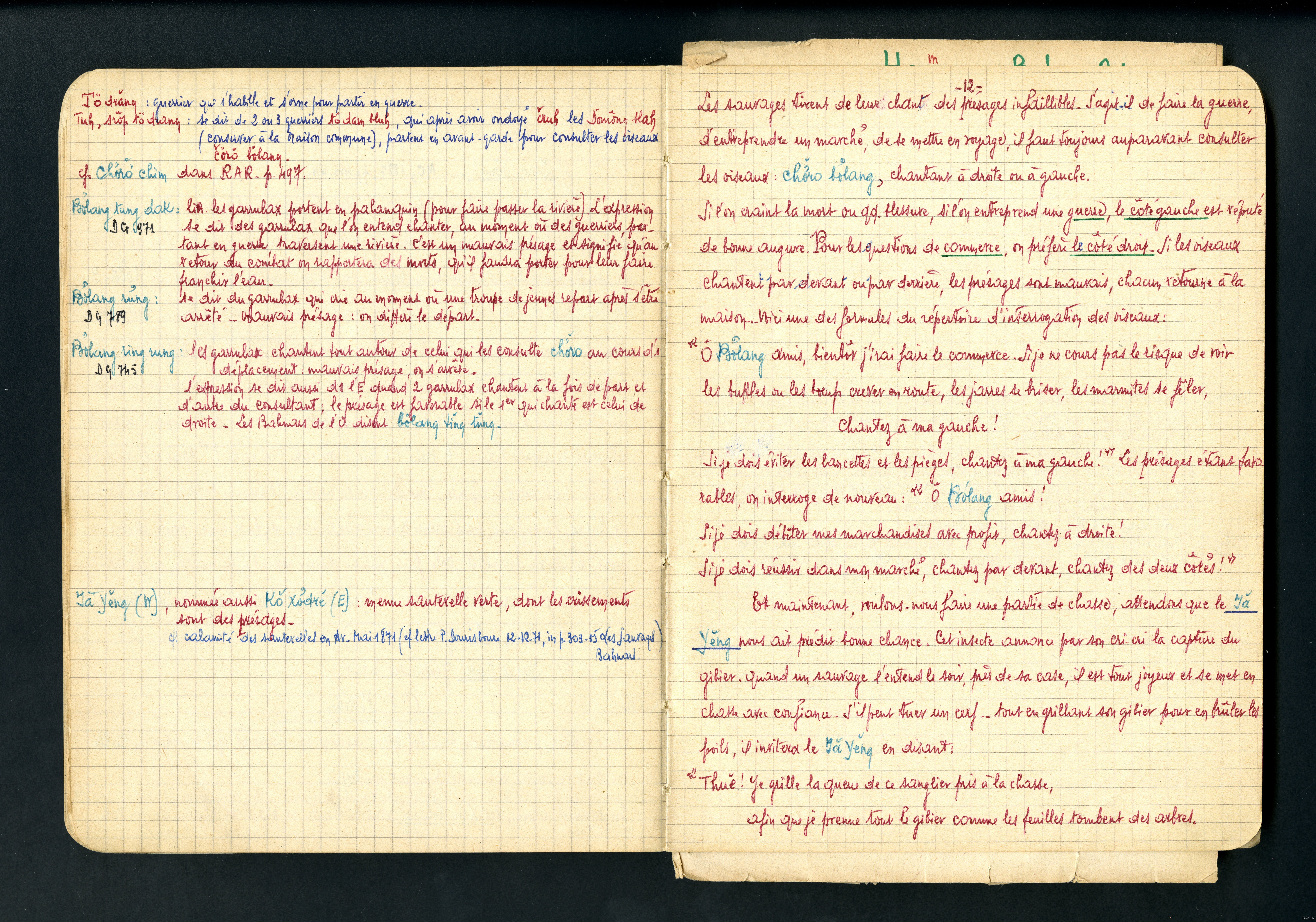 Cahier : moeurs et superstitions des Sauvages Bahnars